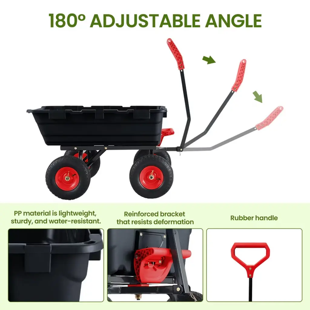 Garden Dump Cart,800lbs Heavy Duty Poly Yard Dump Garden Cart,with 10-inch Tires,180¡ãrotating Handle,steel Frame And Quick Release System For Garden