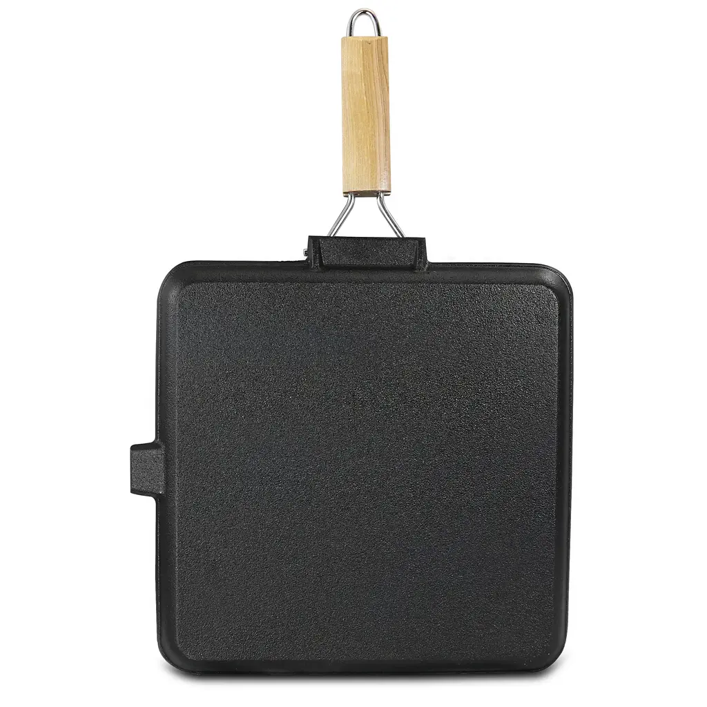 General Store Addlestone 14 Inch Pre-Seasoned Cast Iron Grill Pan With Foldable Wooden Handle - Black