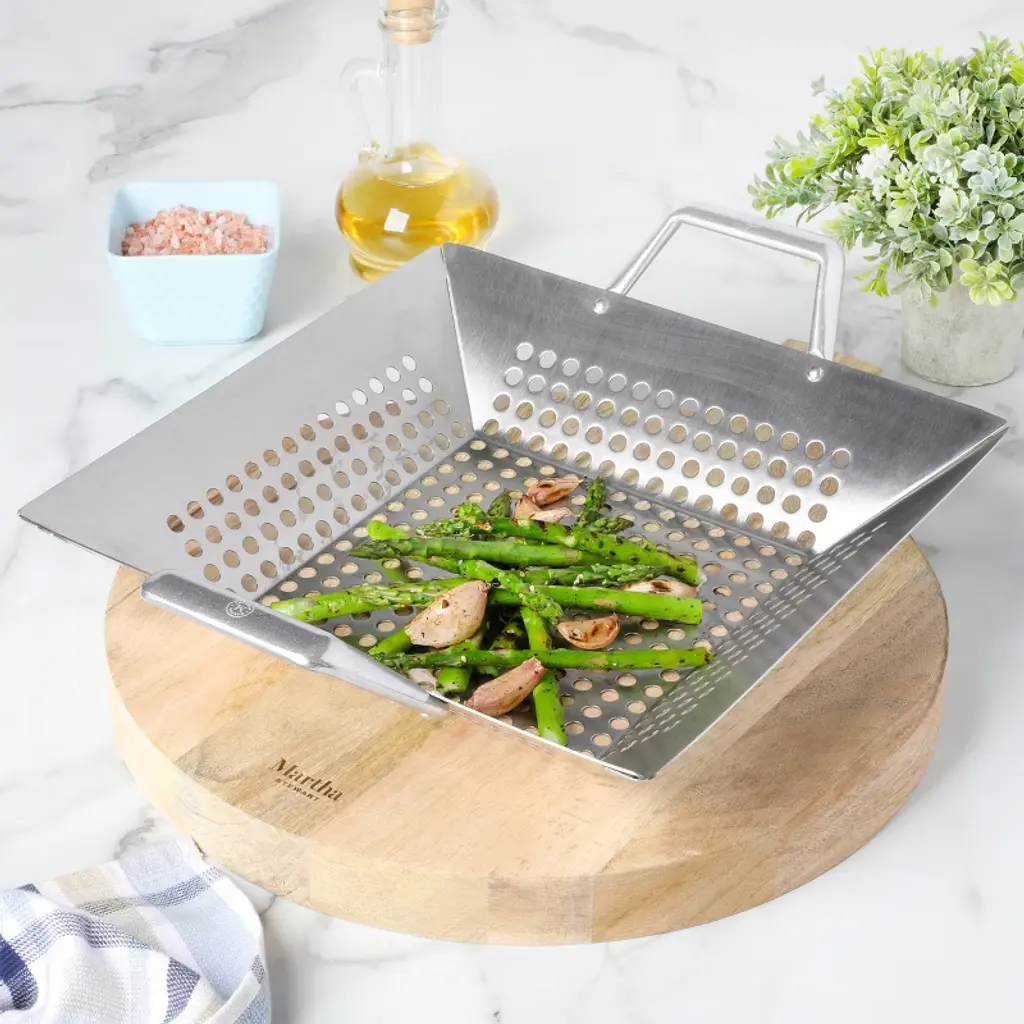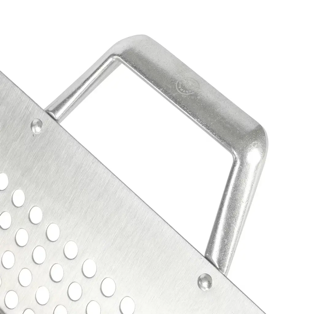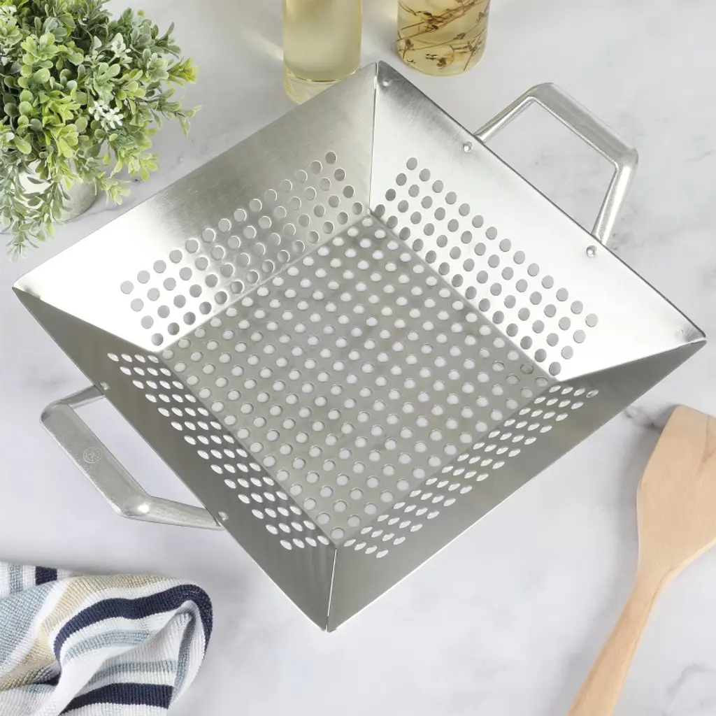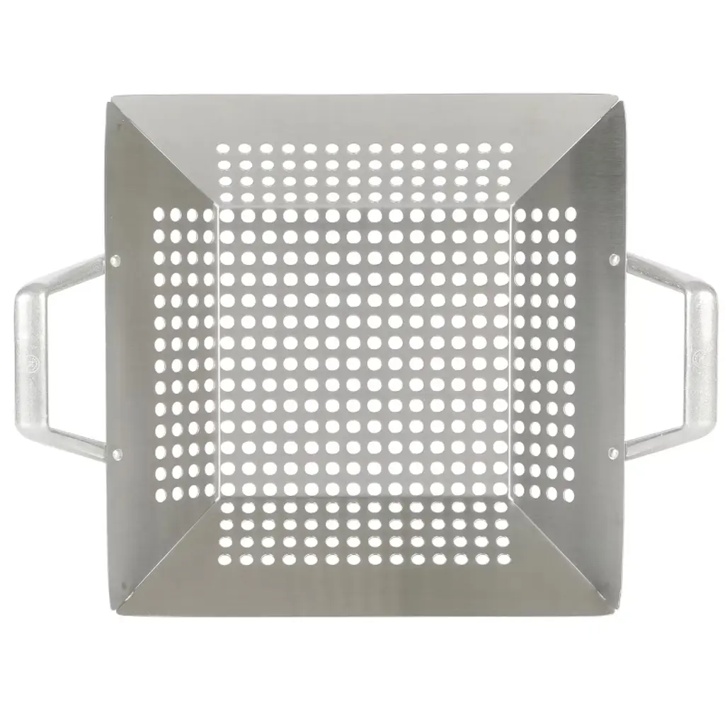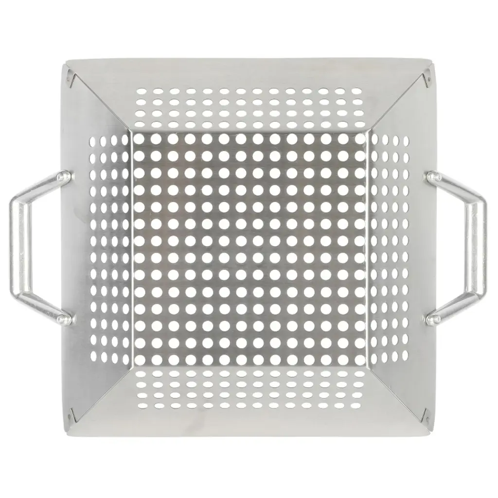 Grill an assortment of small ingredients with the Gibson Amber 12 Inch Square Cast Aluminum BBQ Grill Topper. Features four raised sides to keep food from fall, and built-in handles to easily move from grill to table. The cast aluminum body is perfect to withstand open flame grills while boasting an appealing silver design. Grill green onions, mixed veggies, corn, or other small sides.