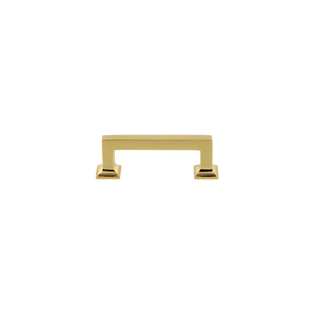 The stepped, square footing and refined silhouette dress up this pull, giving it a more formal appearance. Its 3” size suits cupboards, cabinets, and drawers.