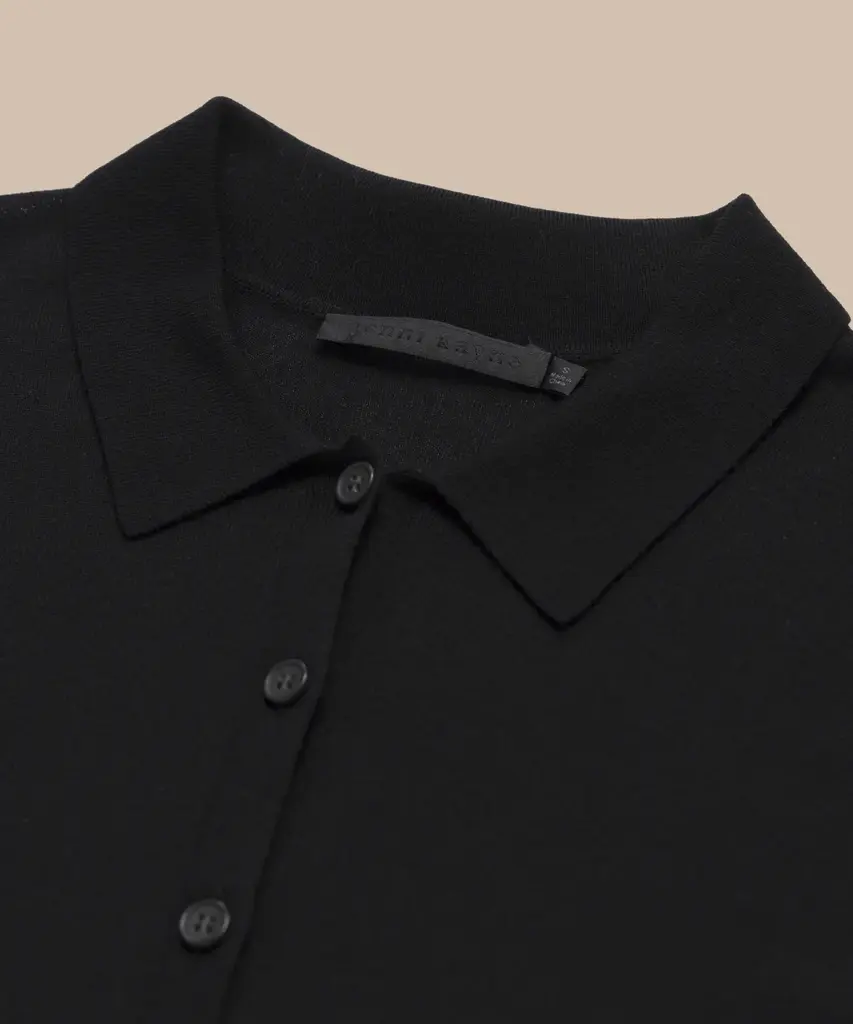 Grayson Pullover Black In casual polo placket style with a light-as-air feel, this warm-weather sweater is destined for your everyday uniform. Style it with denim or your favorite slip skirt for a look that’s instantly classic and always effortless.