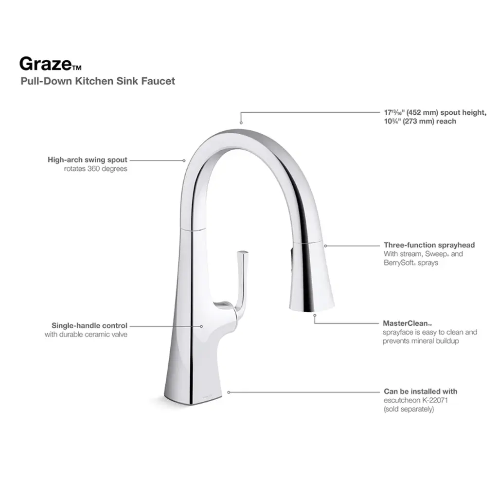 Graze Pull-Down Single Handle Kitchen Faucet With Three-Function Sprayhead With Accessories