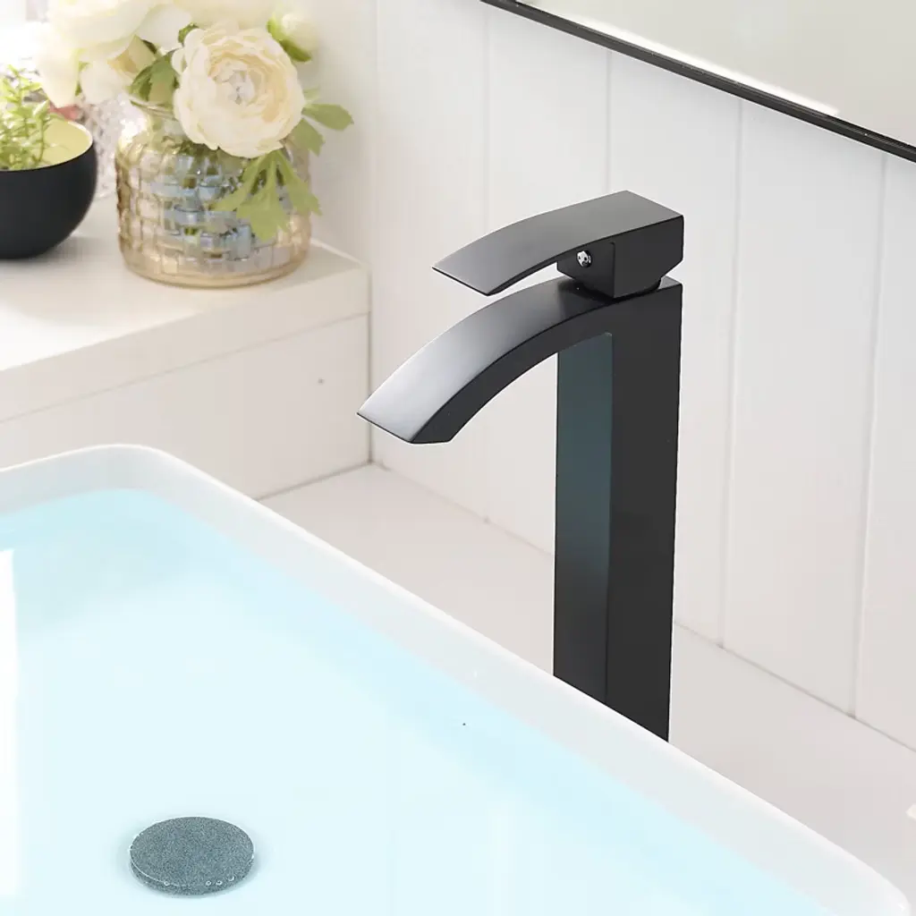 Enhance your space with our stylish black bathroom faucet, perfect for homes, hotels, and commercial bathrooms. Its striking black finish adds a modern touch while resisting rust, corrosion, fingerprints, and tarnishing, ensuring easy maintenance and lasting beauty. The convenient single handle design allows for effortless adjustment of hot and cold water temperatures with just one hand, making your daily routines smoother. Upgrade your bathroom with this perfect combination of contemporary elegance and reliable functionality. Make a bold statement in your space today!