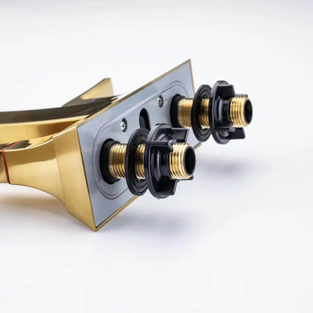 Elevate your bathroom with the Gulches Brushed Gold Widespread Bathroom Sink Faucet. This elegant 2-handle faucet features a stunning waterfall rotatable spout, providing ample clearance for washing hands and delicate items. With a flow rate of 1.2 GPM at 60 PSI, it¡¯s 100% pressure system tested for reliable performance. The dual handles allow for precise control over water temperature and flow, ensuring a comfortable experience. Complete with a matching ABS pop-up drain and water supply lines, this faucet combines style and functionality seamlessly.