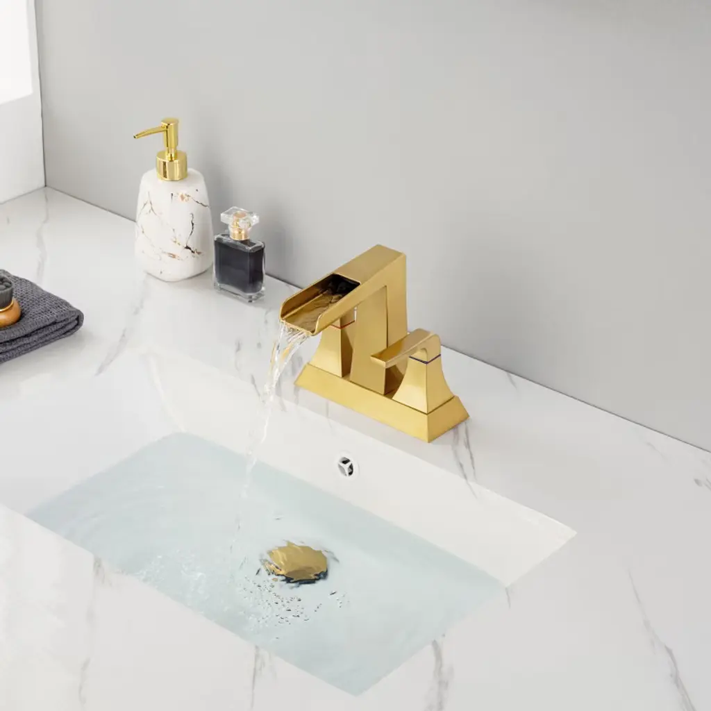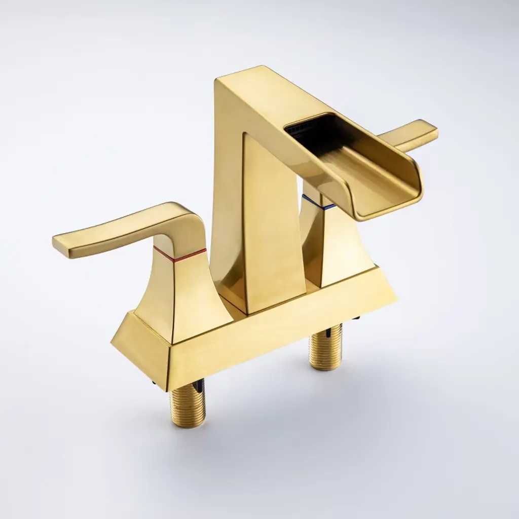 Gulches Brushed Gold Widespread Bathroom Sink Faucet - Elegant 2-handle Design With Waterfall Spout
