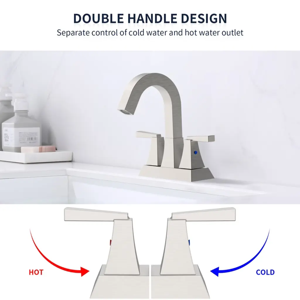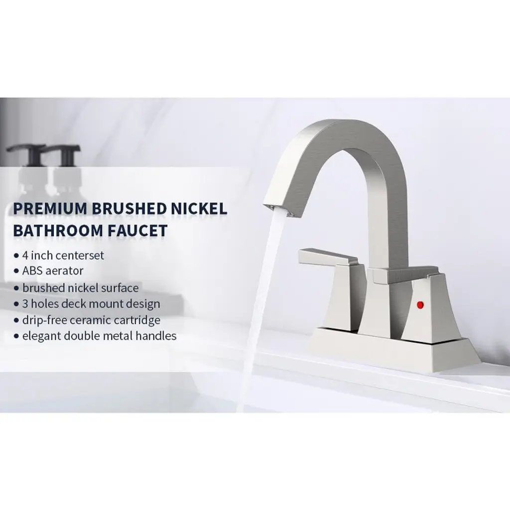 Transform your bathroom with the Gulches Brushed Nickel Bathroom Sink Faucet. This modern 2-handle faucet features a user-friendly design for easy installation, typically completed in just 20 minutes. Its durable surface resists corrosion and rust, ensuring long-lasting beauty. The included pop-up drain with an overflow hole and supply lines provide everything you need for a seamless upgrade, enhancing both functionality and style.