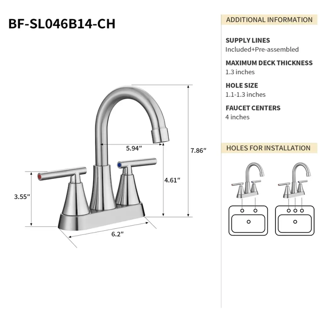 Upgrade your bathroom with the Gulches 2-Handle Bathroom Sink Faucet, featuring a sleek chrome finish. Constructed from durable SS304 stainless steel and zinc alloy, this faucet combines style and longevity. The convenient pull-out design allows for versatile washing tasks, while the smooth ceramic cartridge ensures drip-free operation. With CUPC-certified water supply lines included, this faucet meets high safety and quality standards, making it a reliable choice for any bathroom.
