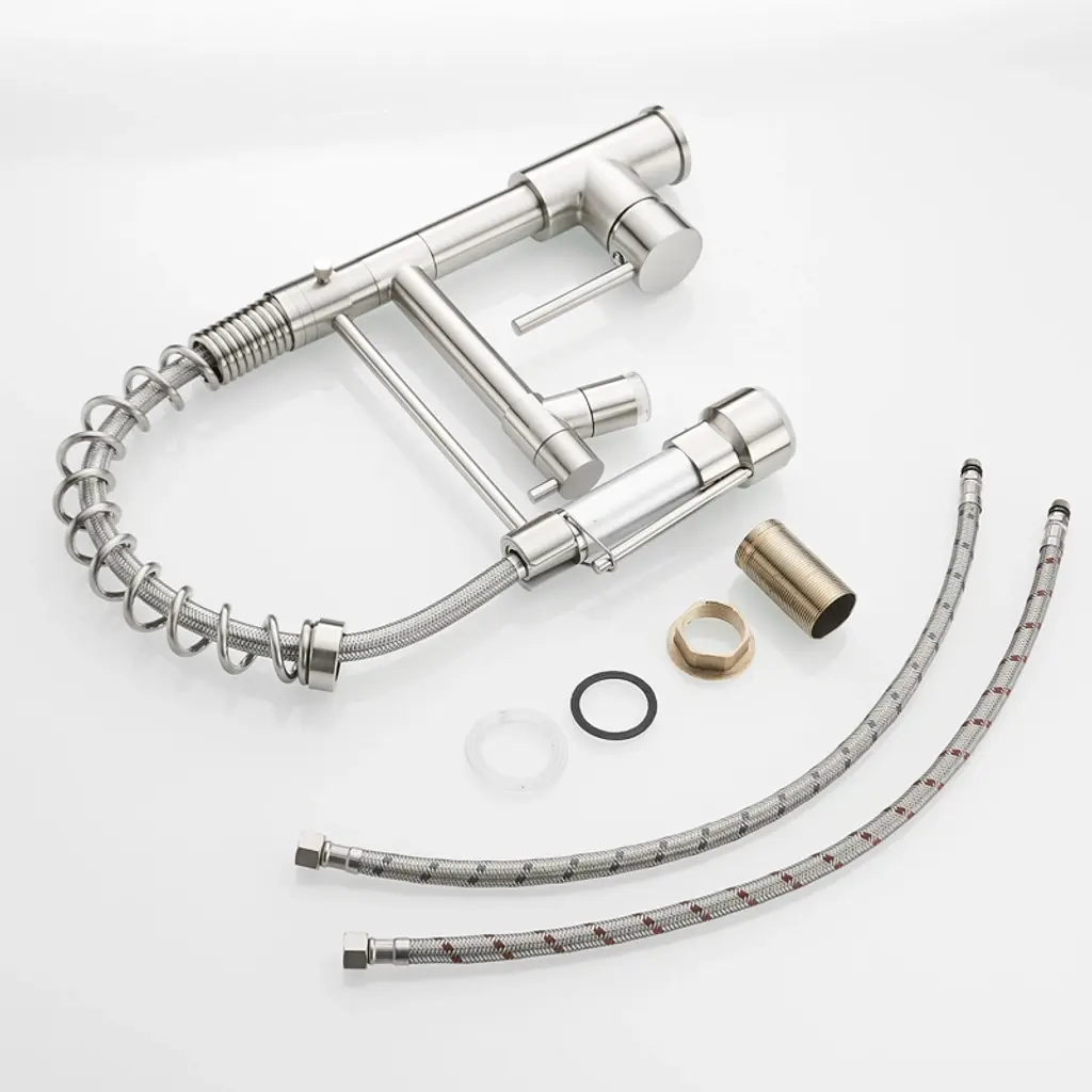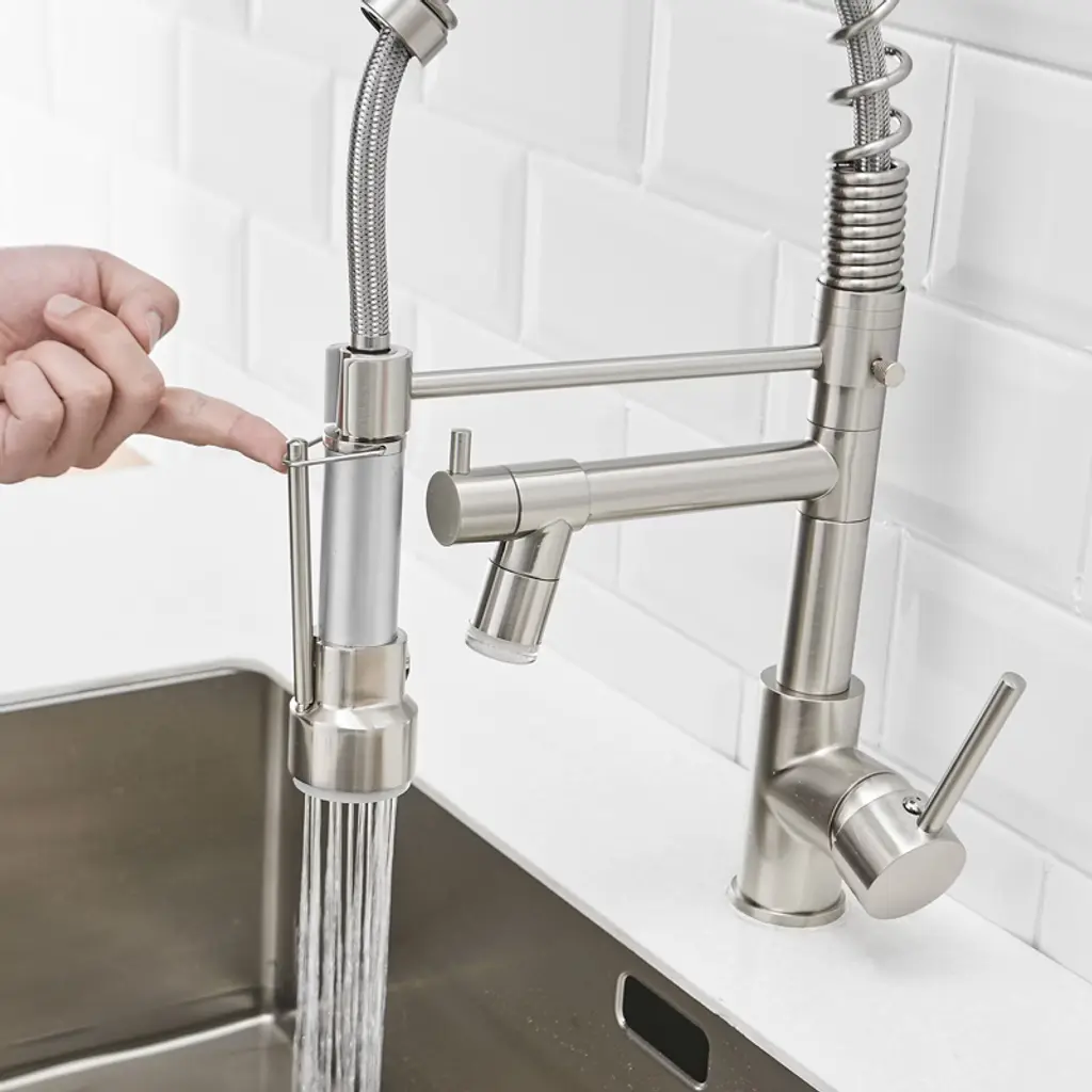 Elevate your culinary experience with our Commercial LED Kitchen Faucet featuring a Pull Down Sprayer and a sleek Single Handle design. Enjoy the convenience of dual-function settings that allow you to effortlessly switch between a powerful stream and a gentle spray, making it a breeze to wash your hands, dishes, or any kitchen essentials. The 360-degree rotation provides maximum flexibility, while the high arch spout design offers ample space for all your sink activities¡ªperfect for kitchens, laundry rooms, farmhouses, restaurants, campers, and trailers alike. Plus, easily adjust water pressure and temperature with the intuitive single handle attachment. Upgrade your kitchen with this stylish and functional faucet that meets all your needs!