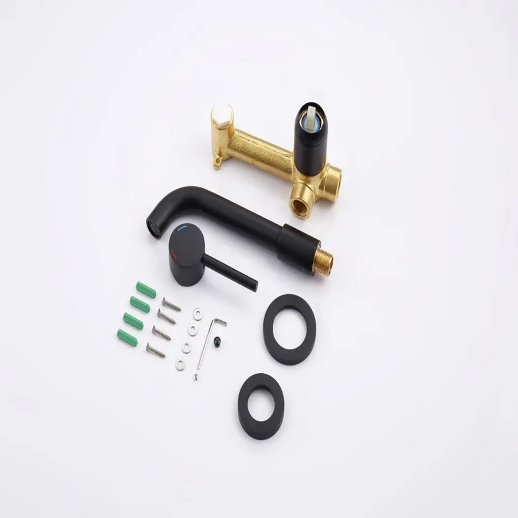 Elevate your bathroom with the Gulches Matte Black Wall Mount Faucet. Crafted from solid brass, this faucet features a brushed nickel finish that resists discoloration and rust. The high-quality ceramic disc cartridge ensures a drip-free experience, even after 500,000 uses. With a 360-degree swivel spout, it meets all your washing needs. Designed for easy installation with standard 1/2" U.S. plumbing connections, this faucet combines style and functionality seamlessly.