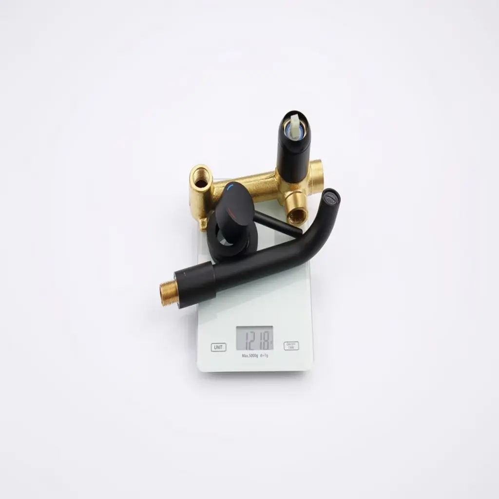 Gulches Matte Black Wall Mount Faucet, Single Handle, Brass Construction, 2 Holes, Bathroom Sink/bathtub