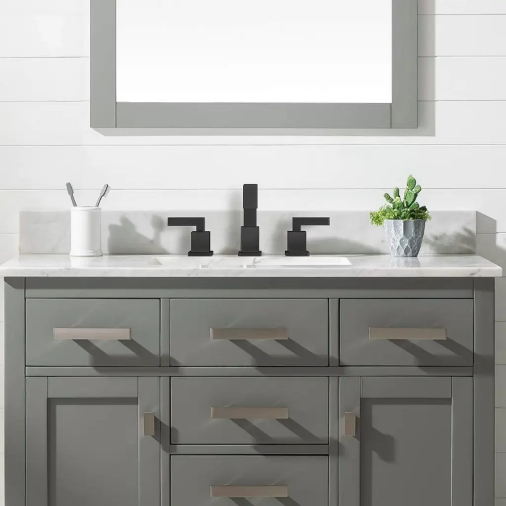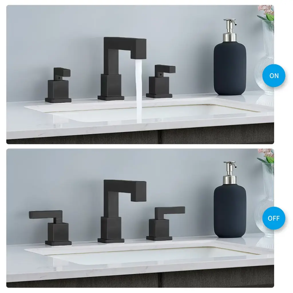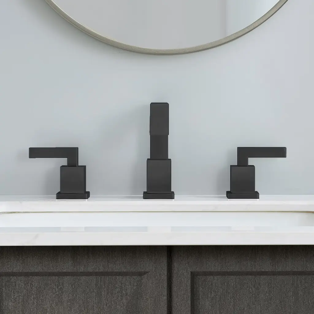 Elevate your bathroom with the Gulches Matte Black Widespread Bathroom Faucet. Crafted from premium 304 stainless steel, this faucet features a lead-free waterway for safe use. The elegant matte black finish resists rust and stains, ensuring durability. With dual straight handles, you can easily control water temperature and flow. The 8-inch widespread design fits 3-hole installations with distances between 6"-16", and the included pop-up drain assembly and all necessary hardware make installation a breeze. Enjoy a stylish and functional addition to your vanity!