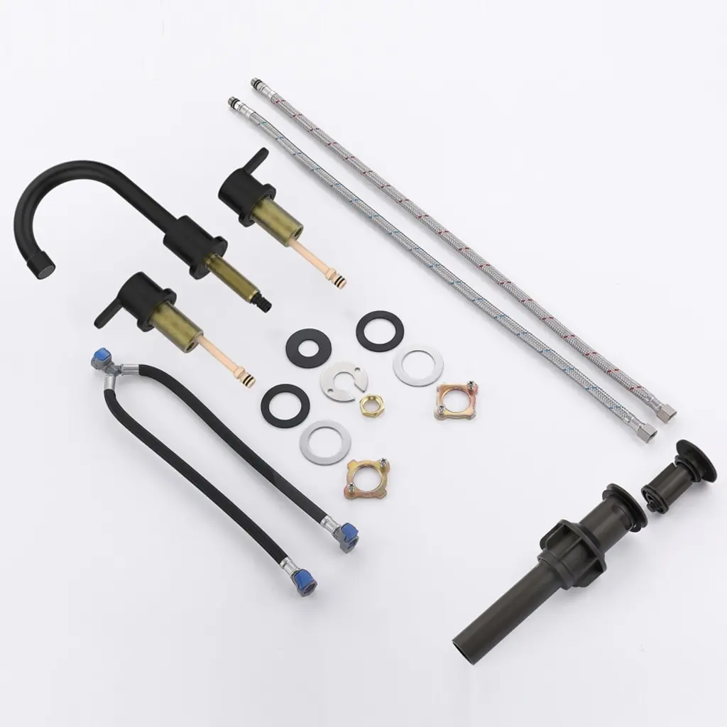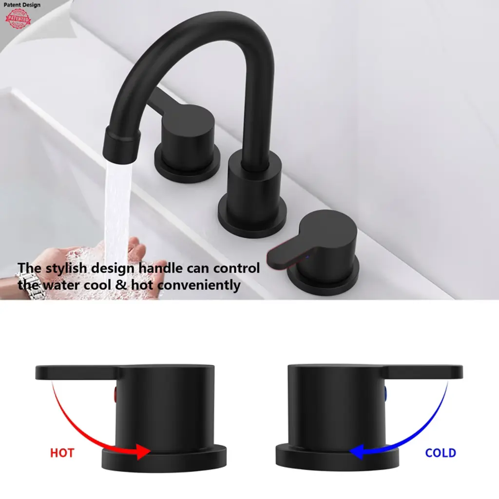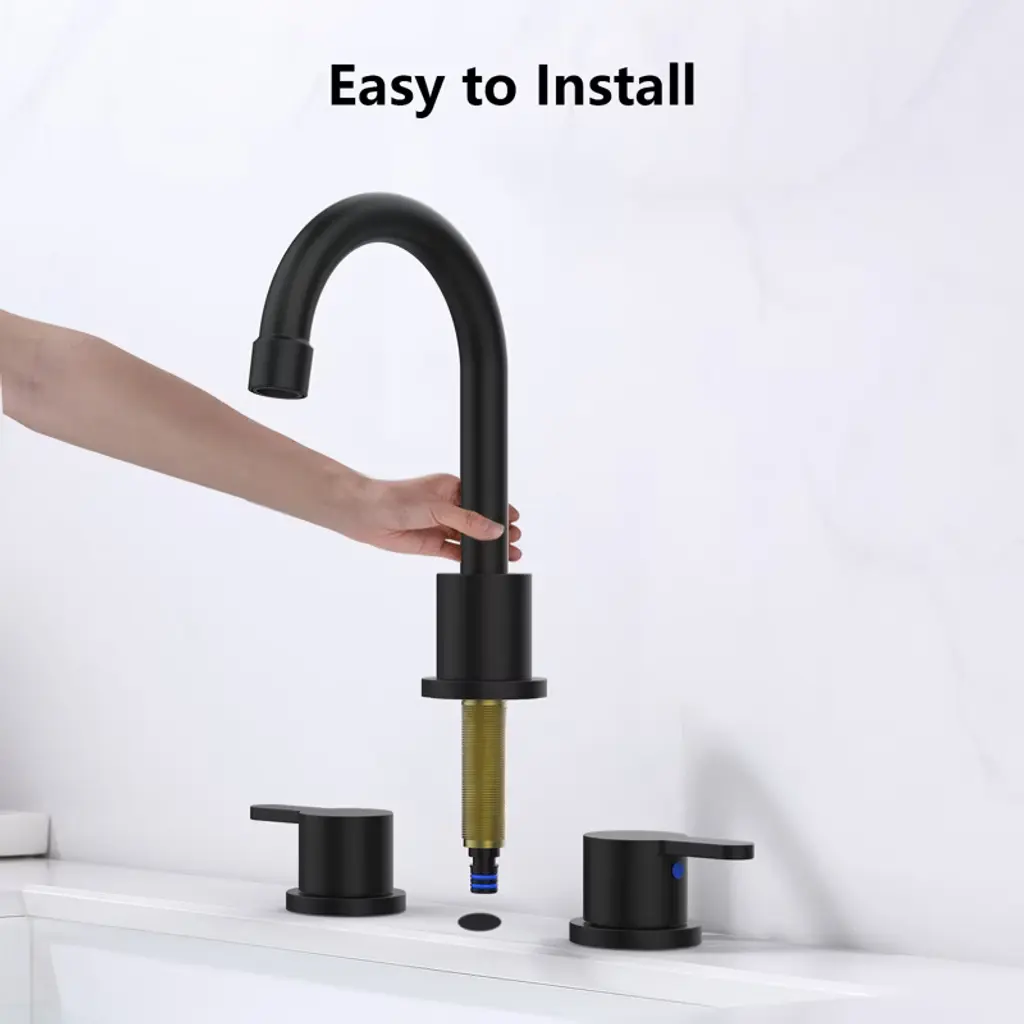 Upgrade your bathroom with the Gulches Matte Black Widespread Bathroom Sink Faucet. Crafted from premium materials, this faucet resists rust, corrosion, and tarnish, ensuring a sleek look that¡¯s easy to maintain. The ergonomic dual handles allow for precise control of water temperature and flow, while the 360° swivel spout provides full washing range. Featuring a drip-free ceramic disc cartridge for durability and a built-in aerator that saves up to 40% water, this faucet combines style and efficiency. Easy to install with included instructions, it¡¯s perfect for any DIY enthusiast!