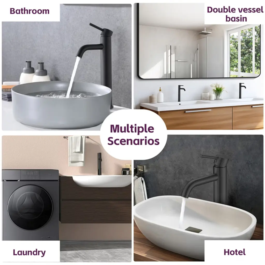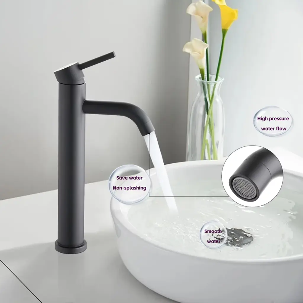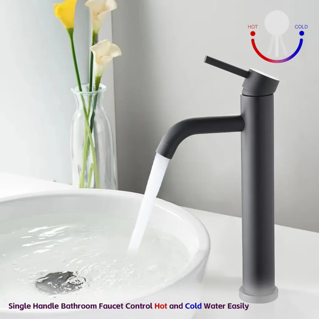Elevate your bathroom with the Gulches Tall Bathroom Faucet, designed for vessel sinks. Crafted from A grade 304 stainless steel, this faucet combines durability with a sleek, modern aesthetic. Its high water outlet meets various needs while the single handle allows for effortless control of flow and temperature. With a one-piece structure for easy installation, this faucet is perfect for enhancing your bathroom's style and functionality.