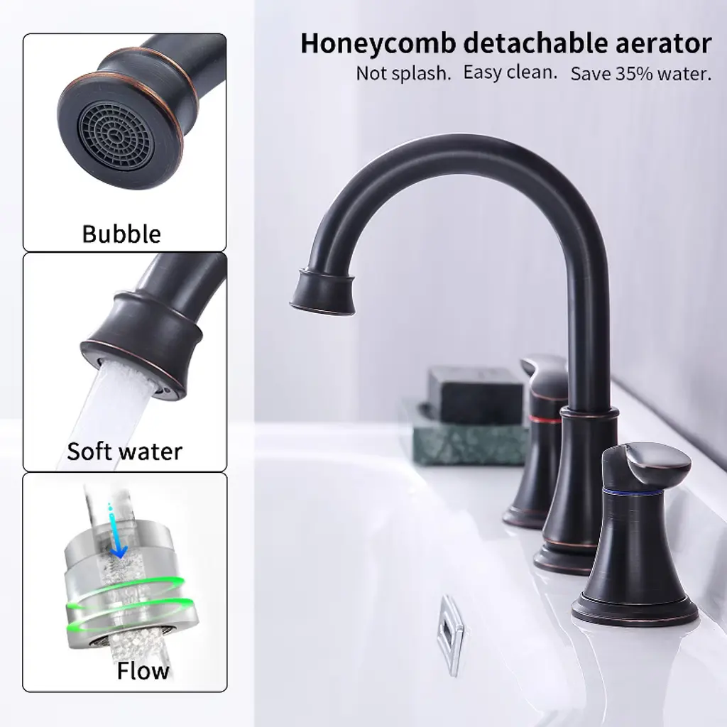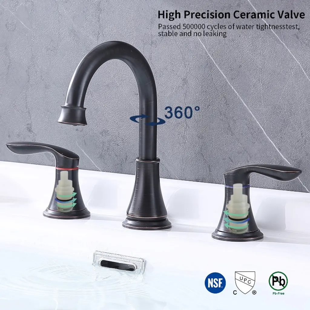 Upgrade your bathroom with the Gulches Oil-Rubbed Bronze Widespread Faucet. Crafted from premium materials, this faucet features a durable design with a 360° swivel spout and two metal lever handles for precise water control. Its water-efficient ABS aerator ensures a soft, splash-free flow, while the easy installation process allows you to set it up in just 30 minutes. Perfect for any home or rental space, this faucet combines style and functionality seamlessly.