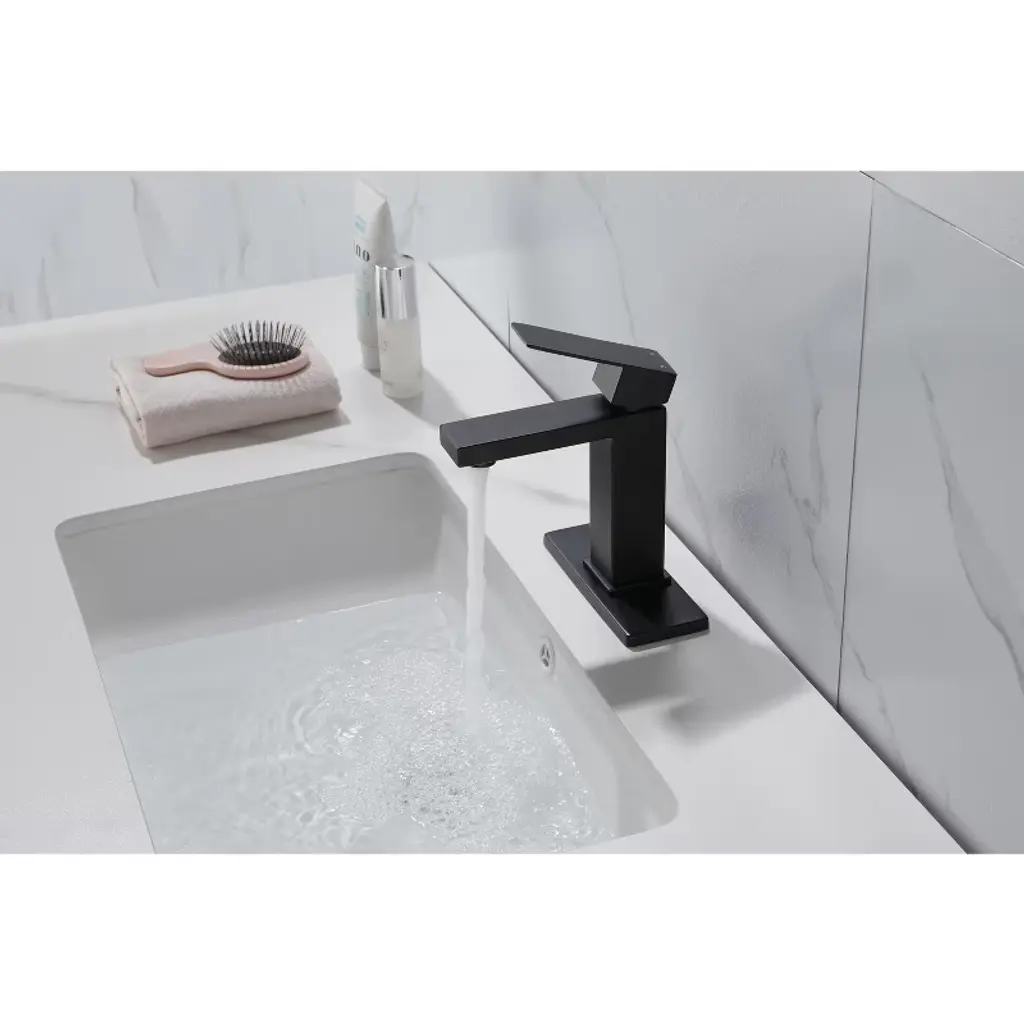 Elevate your bathroom with the Gulches Single Handle Bathroom Sink Faucet. This stylish faucet features a single handle for effortless control of water flow and temperature. High-quality aerators ensure a smooth, splash-free experience while the robust stainless steel construction resists corrosion and rust. The easy-to-press pop-up drain is designed for sinks with overflow holes, preventing leaks and simplifying installation. With all necessary accessories included, you can install it easily without needing a plumber.