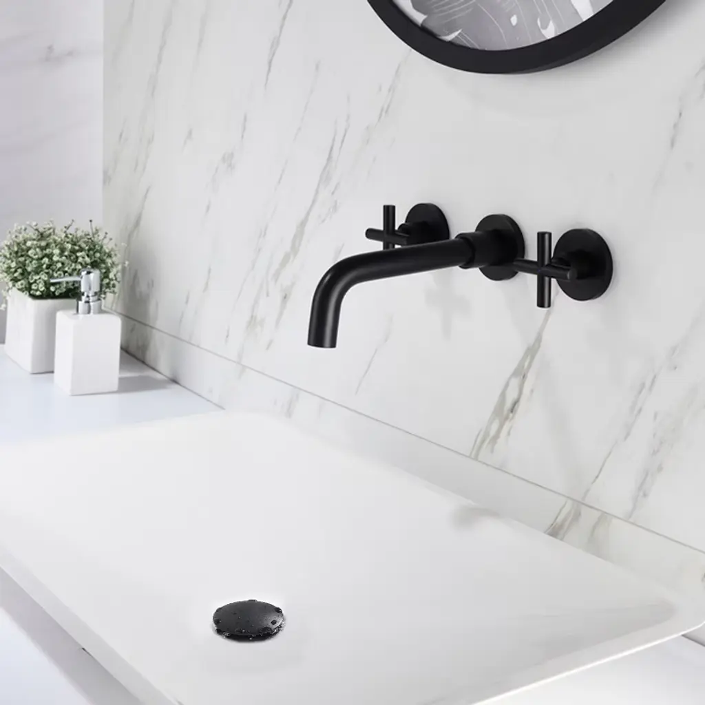 Elevate your bathroom with the Gulches Wall Mounted Dual Handle Bathroom Sink Faucet. Featuring a timeless cross-shaped design, this faucet allows for precise control over water flow and temperature. High-quality aerators ensure a smooth, splash-free water flow, while the durable construction resists corrosion and rust. The easy-to-use pop-up drain is designed to prevent leaks and simplifies installation. Ideal for sinks without overflow holes, this faucet combines classic style with modern functionality.