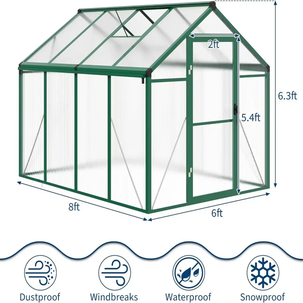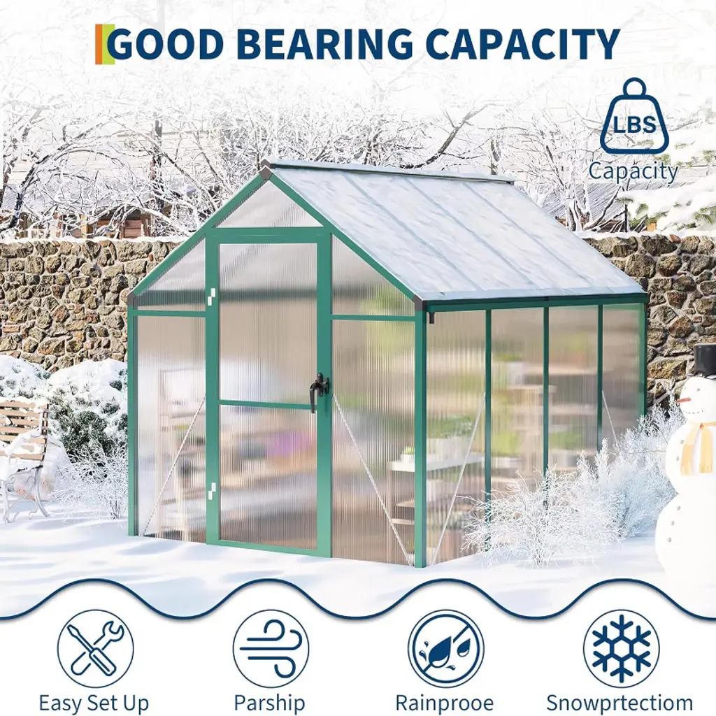 Gustowave 6X8 Ft. Easy To Assemble Walk-in Aluminum Greenhouse In Green. (Upgraded Handle Version)