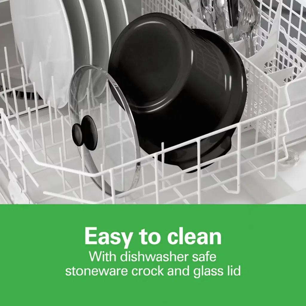 The Hamilton Beach® Programmable Slow Cooker is the versatile go-to slow cooker that lets you cook all your family's favorite meals without having to spend a lot of time in the kitchen. Mix and match warm, low or high heat settings with 5 cooking times — 2, 4, 6, 8 or 10 hours — for a total of 15 programmable cooking options. After cooking is complete, the slow cooker automatically switches to warm so you can set it and forget it. The large size and oval shape make it ideal for cooking large cuts of meat. The slow cooker will hold a 6 lb. chicken or 4 lb. roast and serves 7+ people. It's perfect for cooking one-pot meals like lasagna, homemade chili, barbecue and macaroni and cheese. It's also great for everything from meatball appetizers and vegetable side dishes to delicious desserts like peach cobbler and chocolate lava cake. The removable stoneware crock and glass lid are both dishwasher safe for easy cleanup.