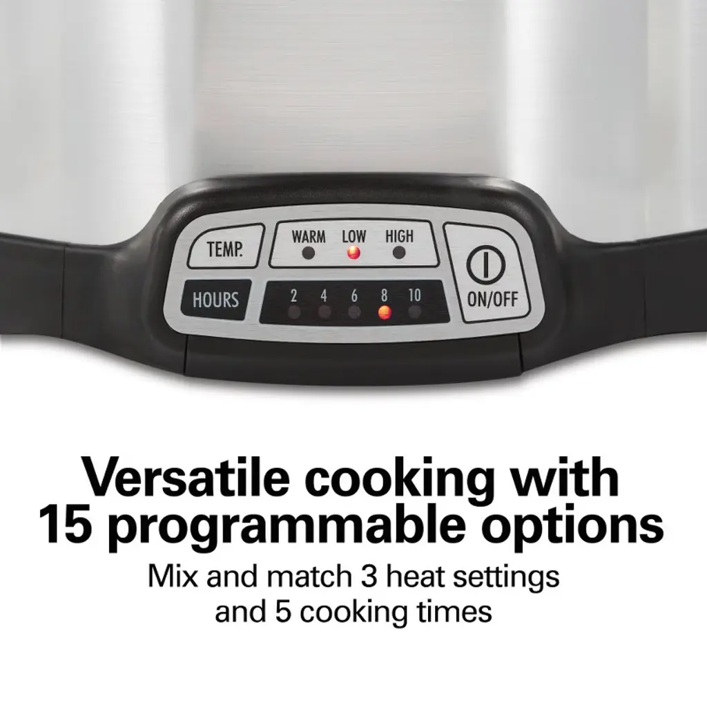 Hamilton Beach Programmable Slow Cooker - Silver - 33463: 6 Qt Stoneware Pot, 8 Settings, Stay-cool Handles, 1-year Warranty