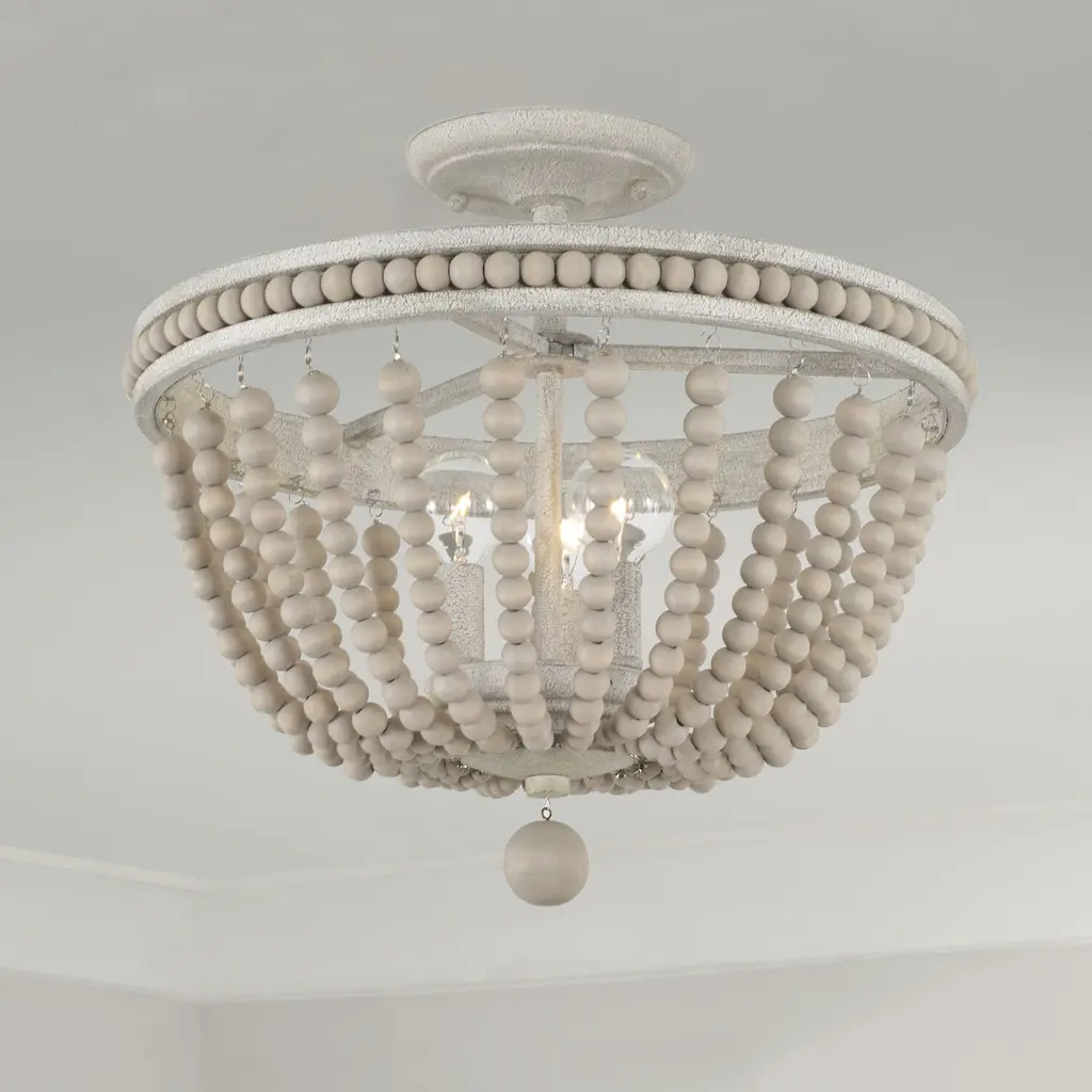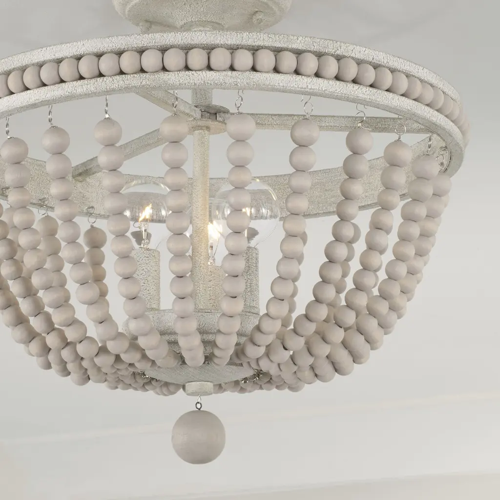 Bring bohemian charm to any space with the hand-painted wood beads of the Handley Semi Flush. The light, neutral tones of the Sand Dollar finish complement a variety of styles, while the sand-like texture creates dimension.