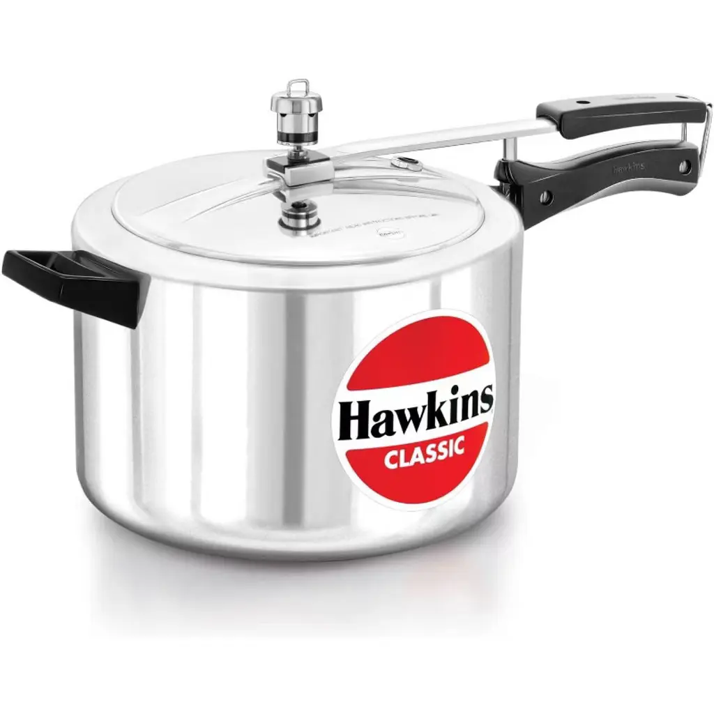Hawkins Classic 10l Aluminum Pressure Cooker: 1-year Warranty, Locking Lid, Cool Touch Handle, Hand Wash, Silver