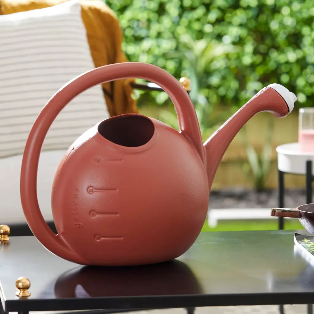 Hc Companies 2 Gallon Premium Large Mouth Garden Plant Watering Can With Rosette, Water Indicator Level, And Ergonomic Handle (Terracotta))