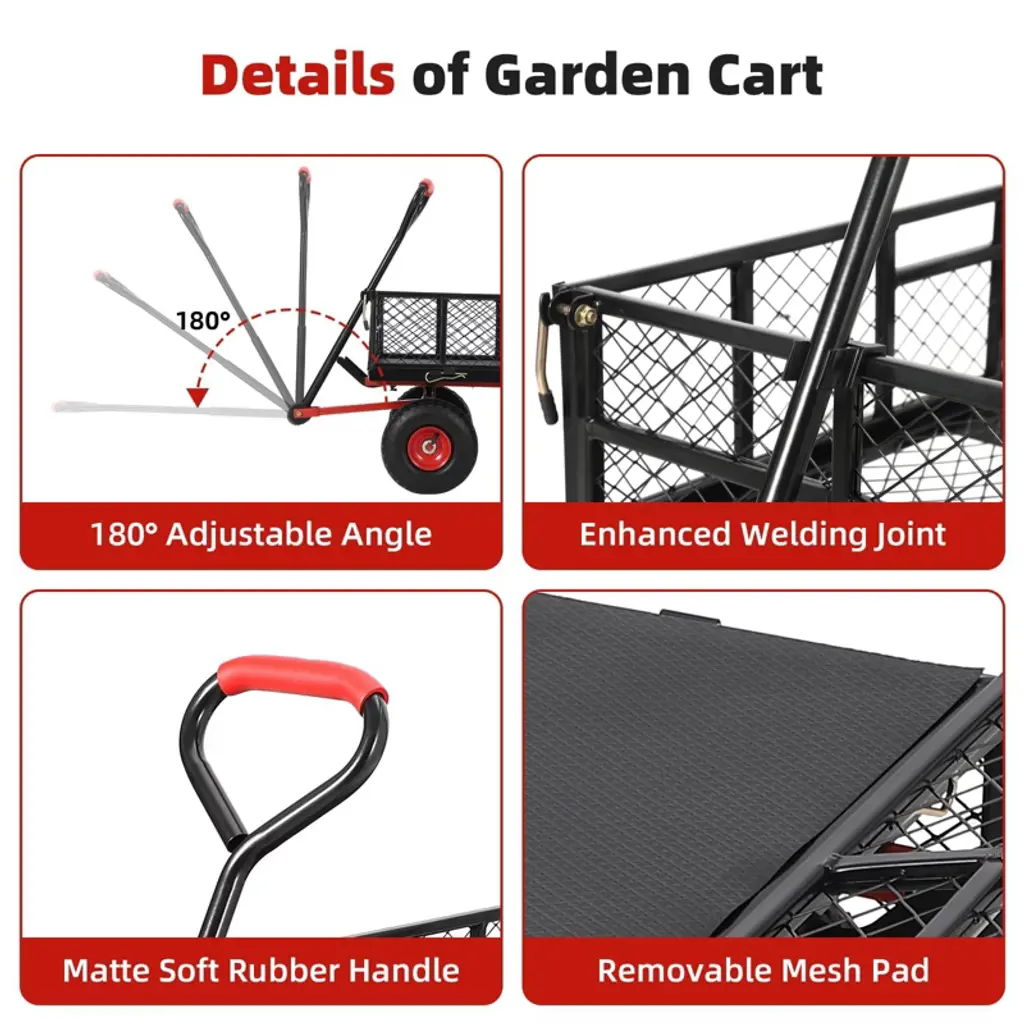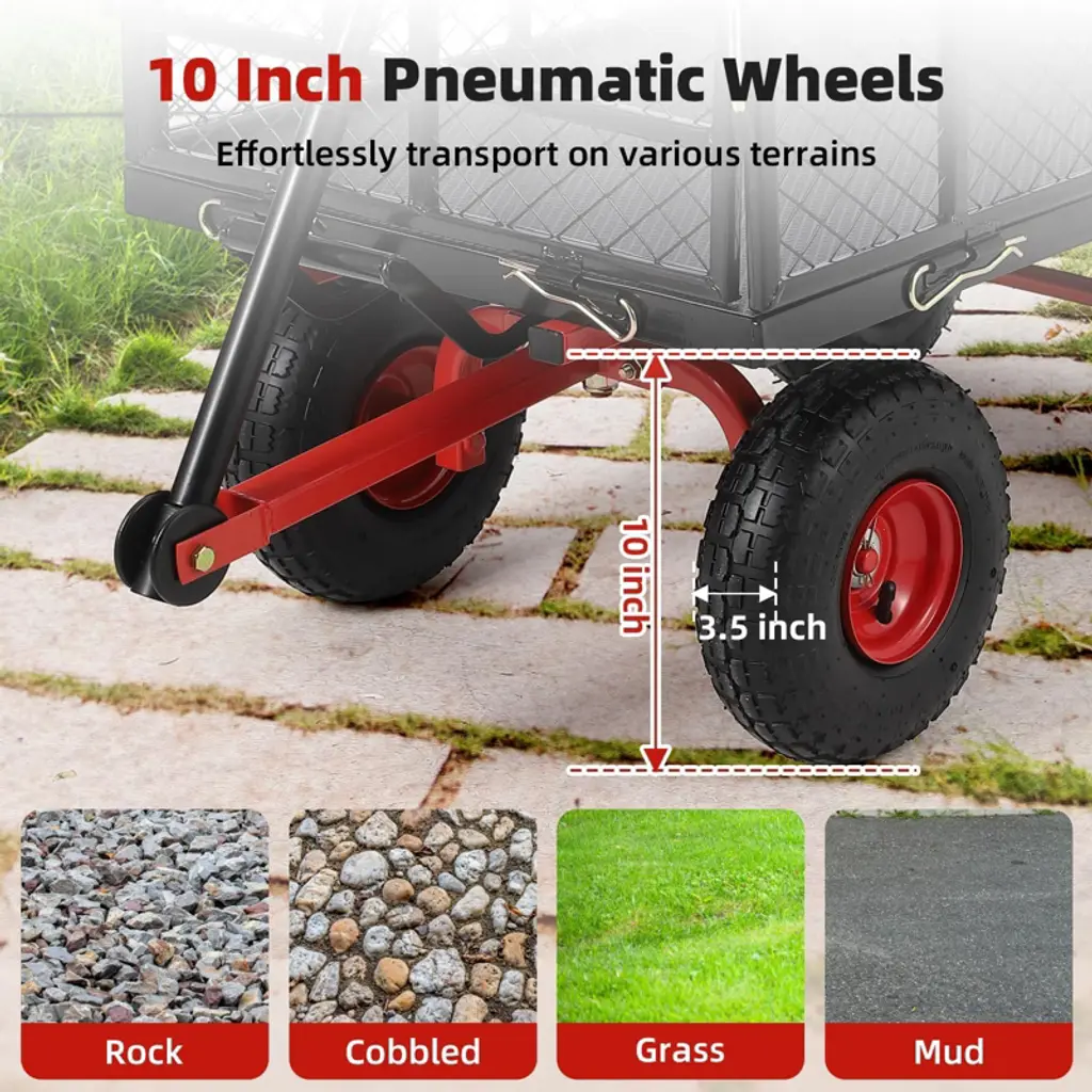 Heavy Duty 880lbs Capacity Mesh Steel Garden Cart, Pullable Garden Wagons Carts On Wheels, Folding Utility Wagon With Removable Sides For Outdoor