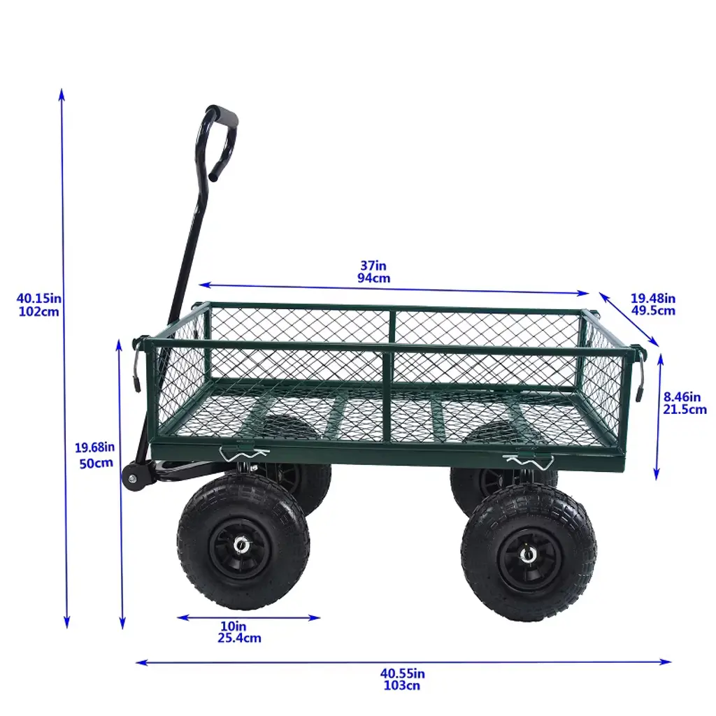 Heavy Duty Garden Cart, Utility Metal Wagon With Removable Mesh Sides And 180° Rotating Handle,green