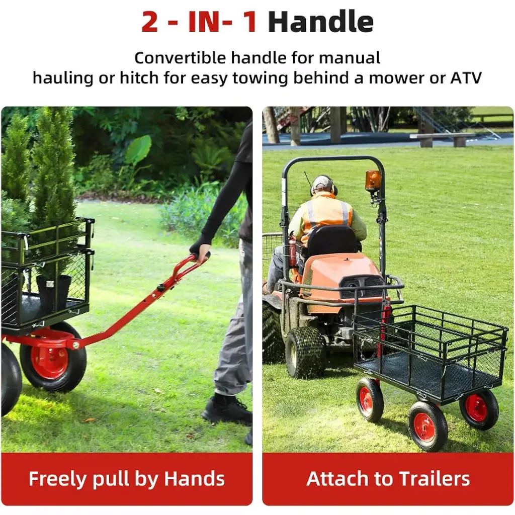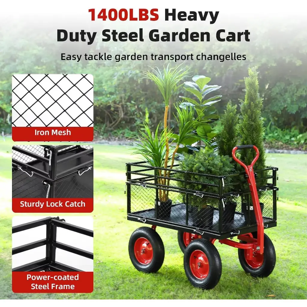 Heavy Duty Steel Garden Cart – 1400 Lbs Capacity Utility Wagon With Removable Sides, 2-in-1 Handle & 16" Pneumatic Tires