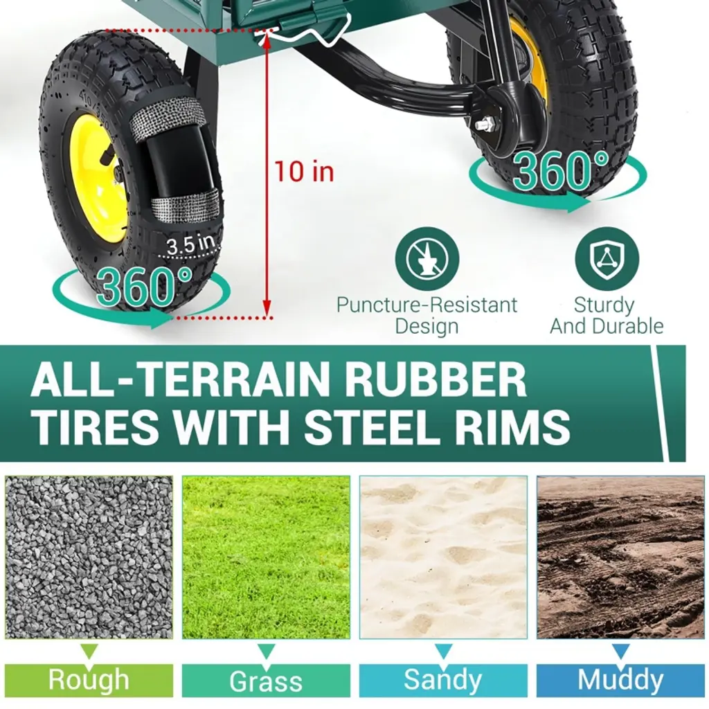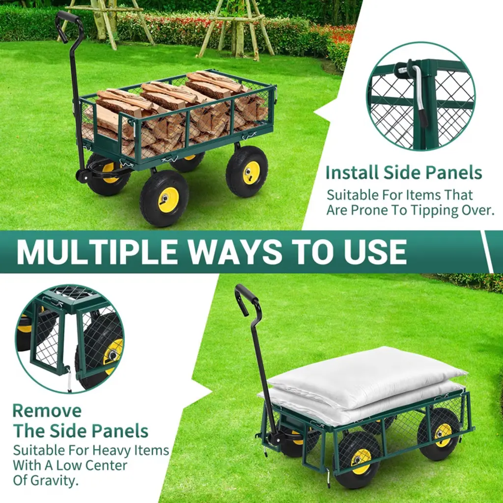 Heavy Duty Steel Garden Cart,550 Lbs Capacity 3-in-1 Pullable Metal Wagon With 10" Pneumatic Wheels,180¡ãrotating Handle & Removable Sides, Green
