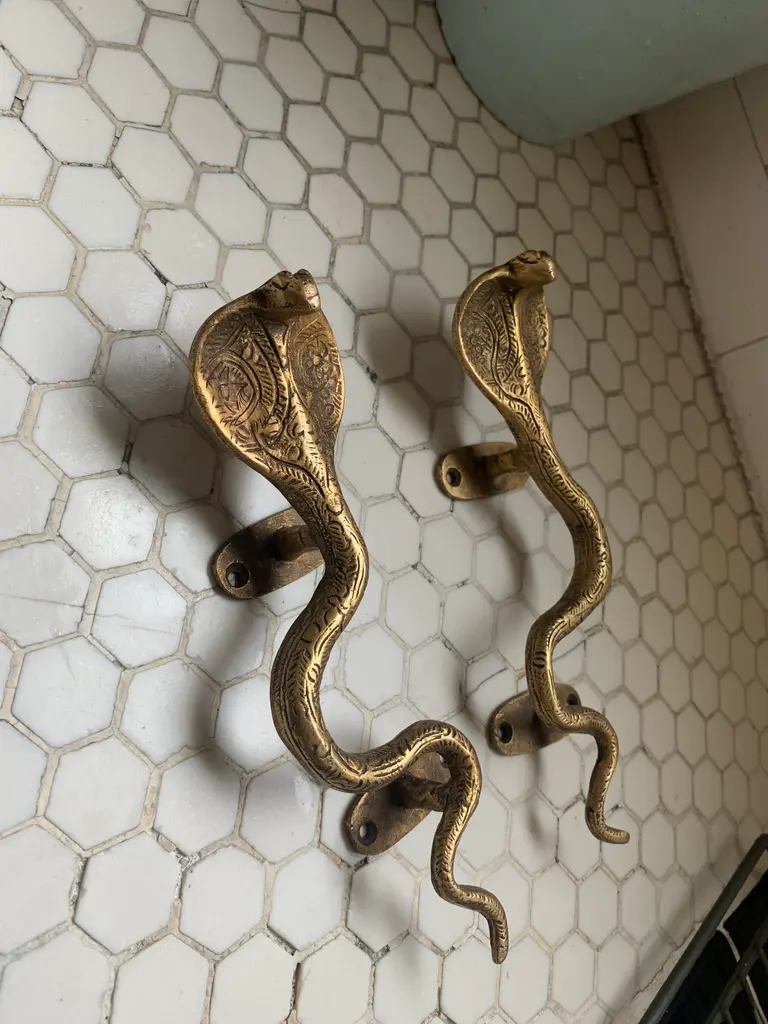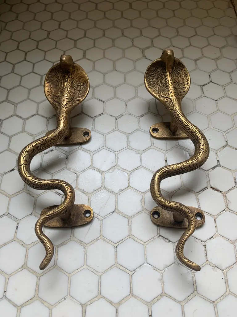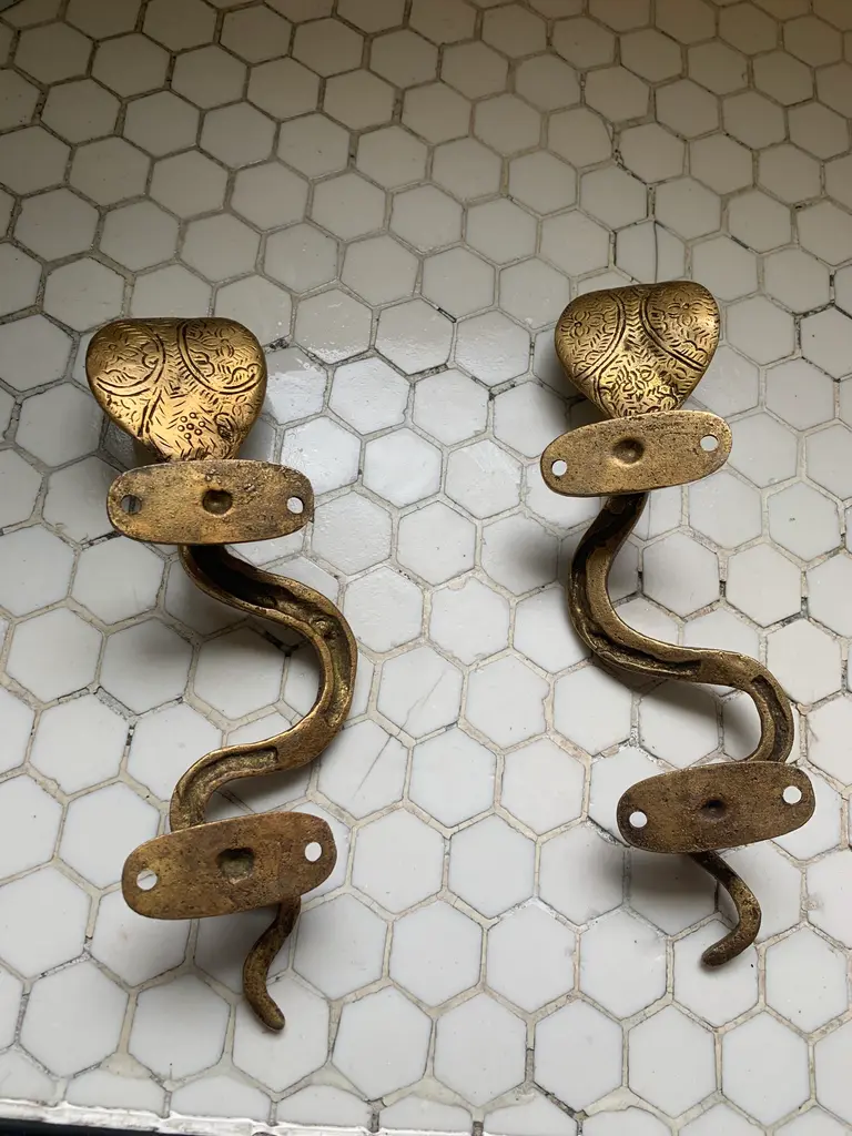 Hollywood Regency Gold Cobra Door Handles- A Pair