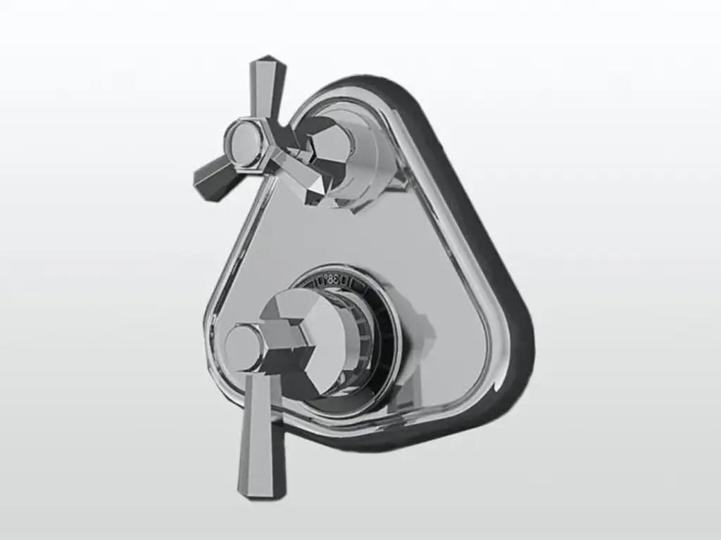 Includes 1 acrylic handle, 1 button insert with On/Off/hot/cold arrows, 1 screw, and 1 single handle adapter.