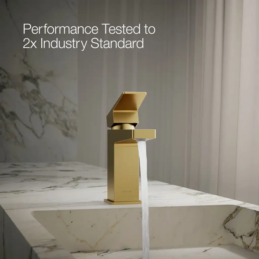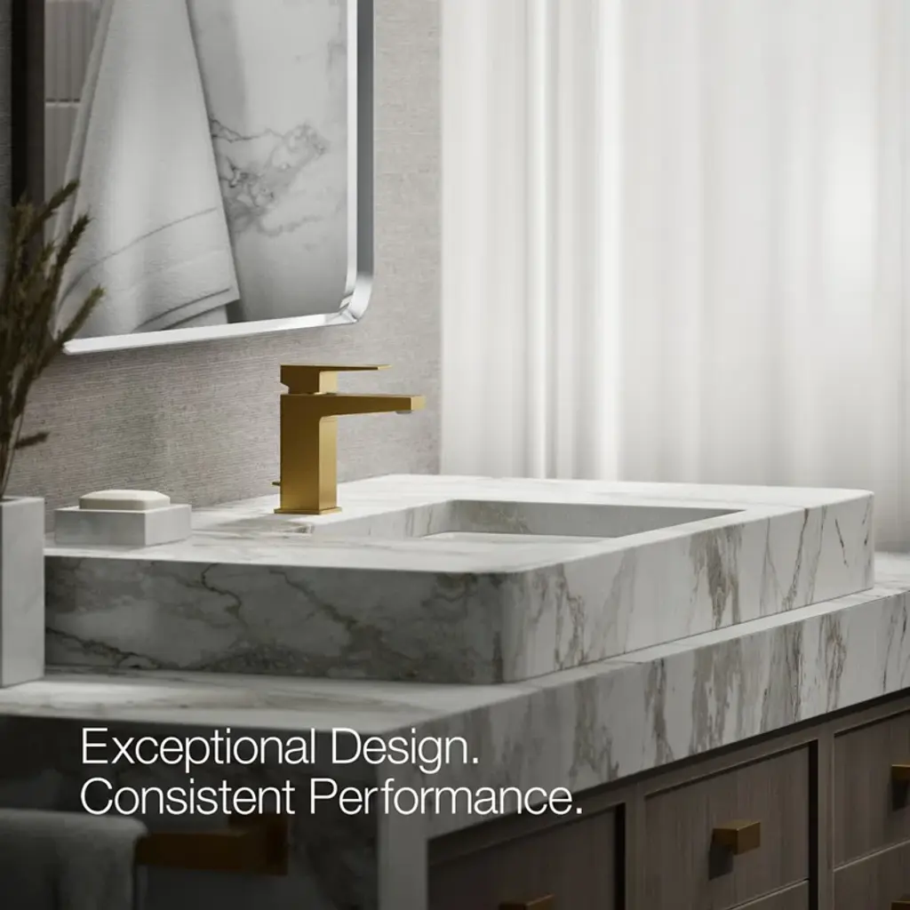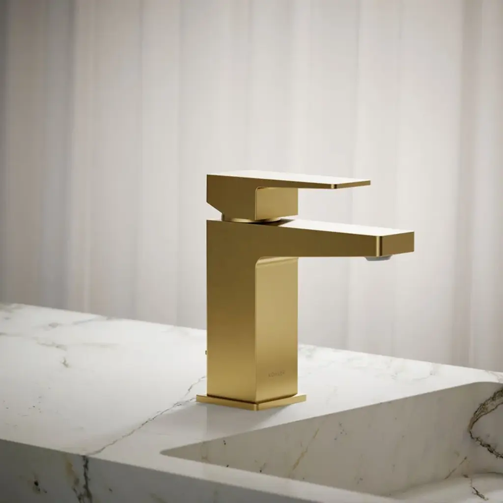 With clean lines and square features, the contemporary single-handle faucet draws inspiration from modern European design. Its sleek look helps create a clutter-free, easy-to-clean bathroom atmosphere.