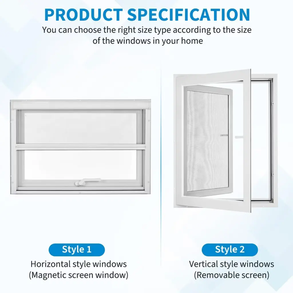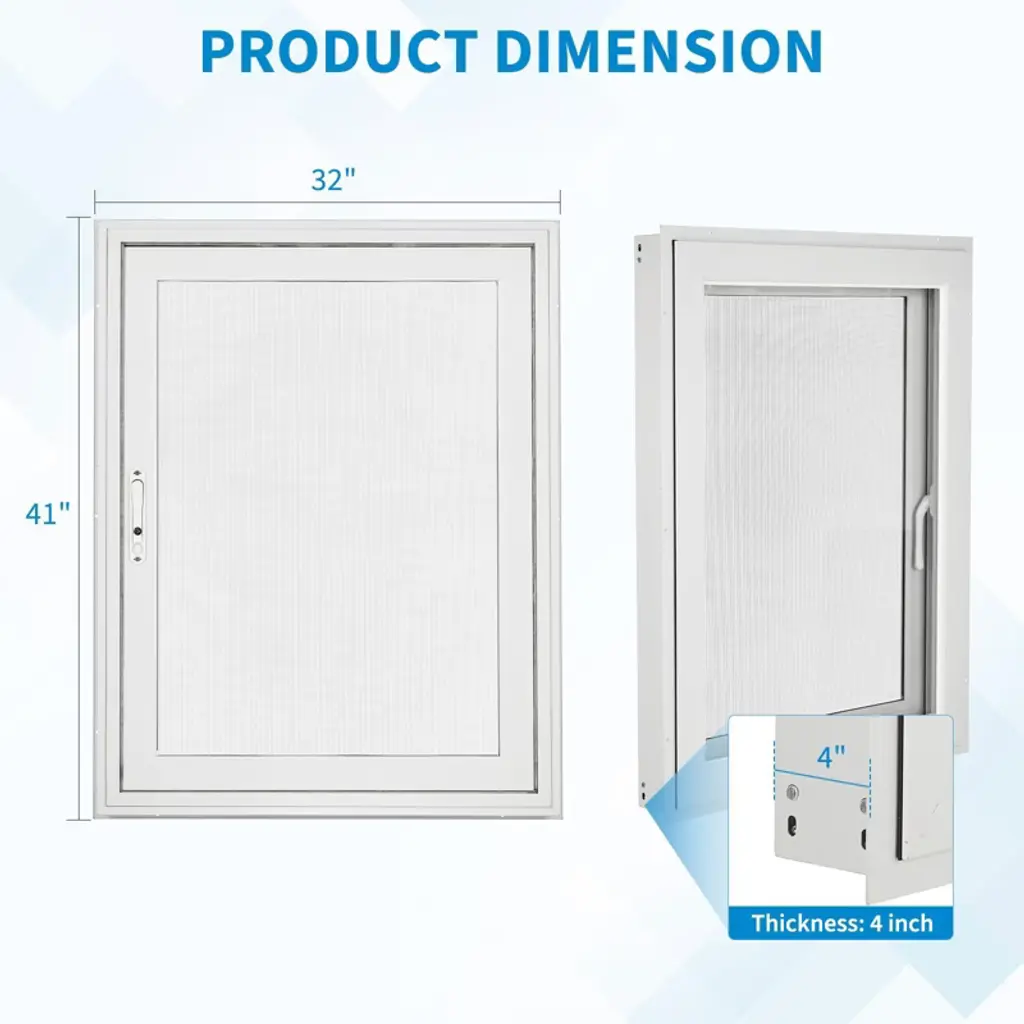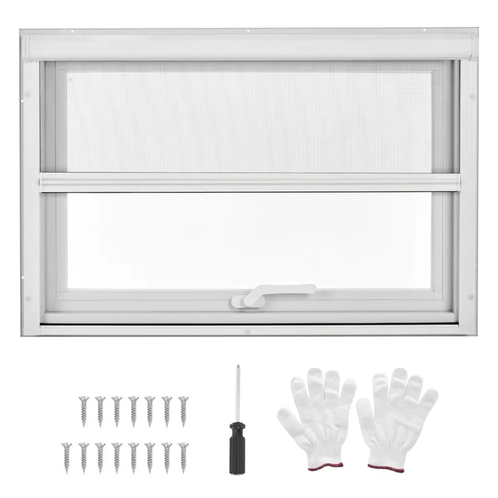 These heavy-duty sliding windows feature sturdy aluminum frames and 5mm tempered glass, offering durable protection against harsh weather for sheds or outdoor spaces. With a four-gear adjustable opening (30°, 40°, 50°, 60°) that can be securely fixed, they provide customizable ventilation. The glass-mounted handle and magnetic mesh screen enhance ease of use and stability. Equipped with a childproof key lock, the windows ensure security and prevent accidental openings. The package includes all necessary installation hardware and tools, designed for easy sliding installation with recommended wall cutout dimensions.