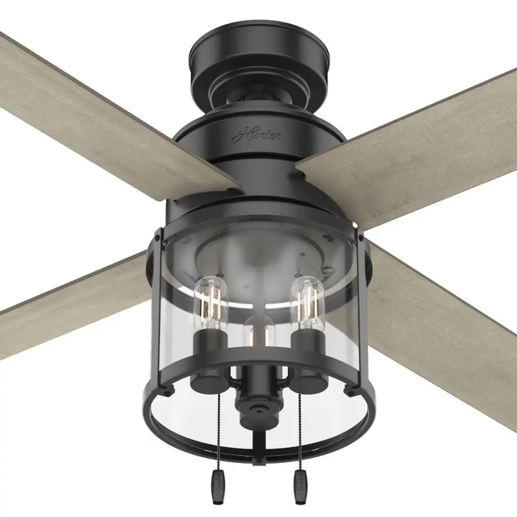 Hunter 52" Astwood Lighted Ceiling Fan Matte Black With Bleached Grey Pine Blades - Integrated Led, Pull Chain Control