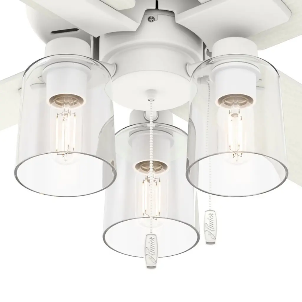 Hunter 52" Pelston Lighted Ceiling Fan Matte Black Finish With Integrated Led And Pull Chain Control For Damp Rated Indoor Spaces