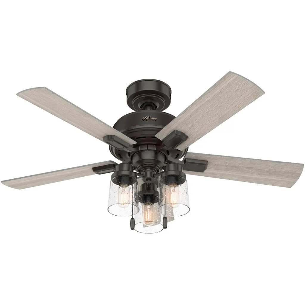 Hunter Fans 44" Pelston Lighted Ceiling Fan Noble Bronze Finish With Integrated Led And Pull Chain Control