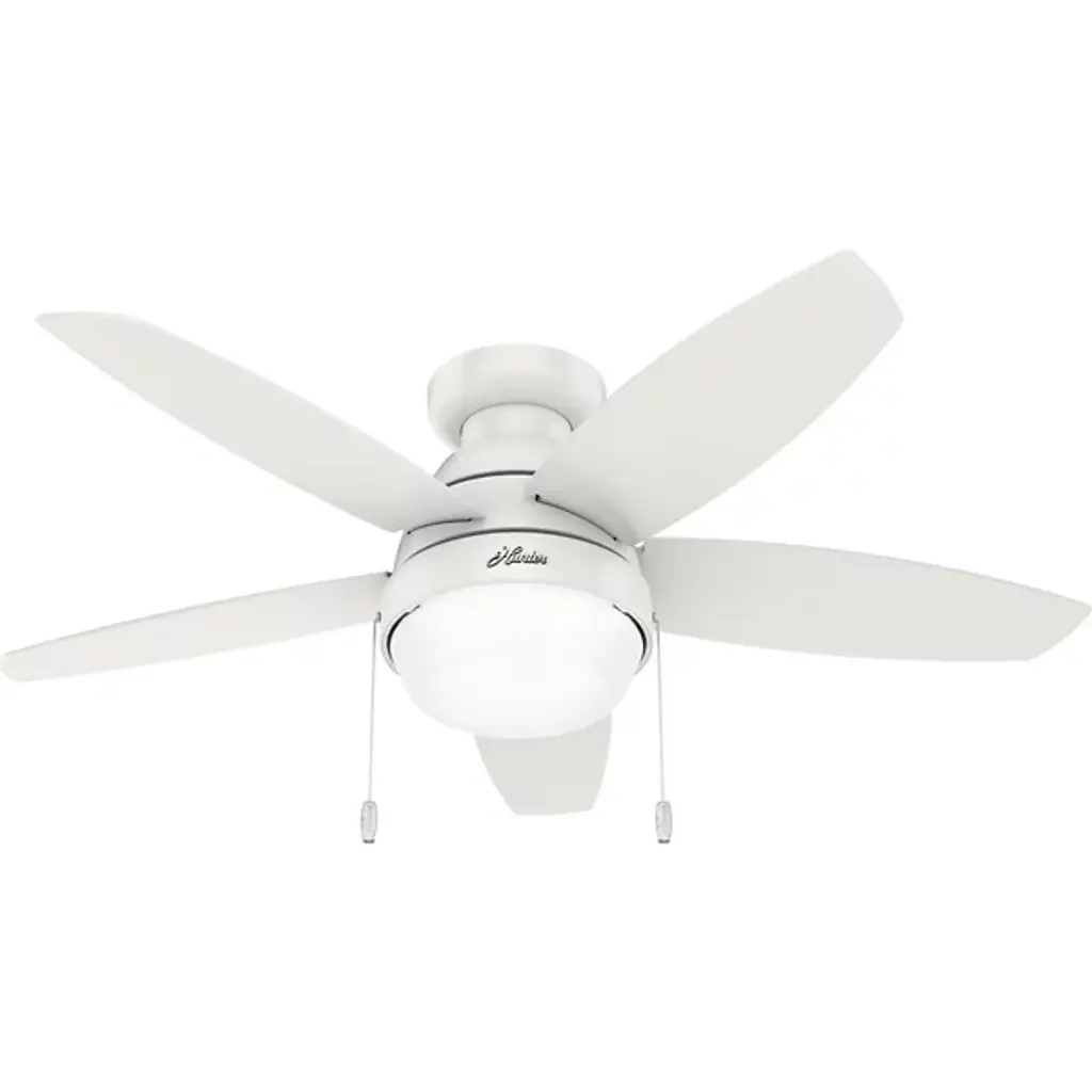 Hunter Fans 52" Crestfield Lighted Ceiling Fan Fresh White With Drifted Oak Blades, Integrated Led, Pull Chain Control