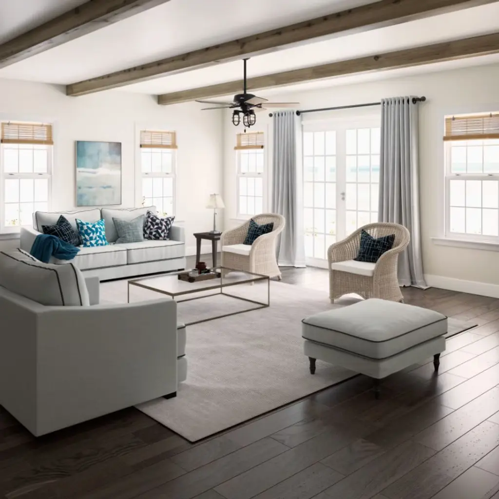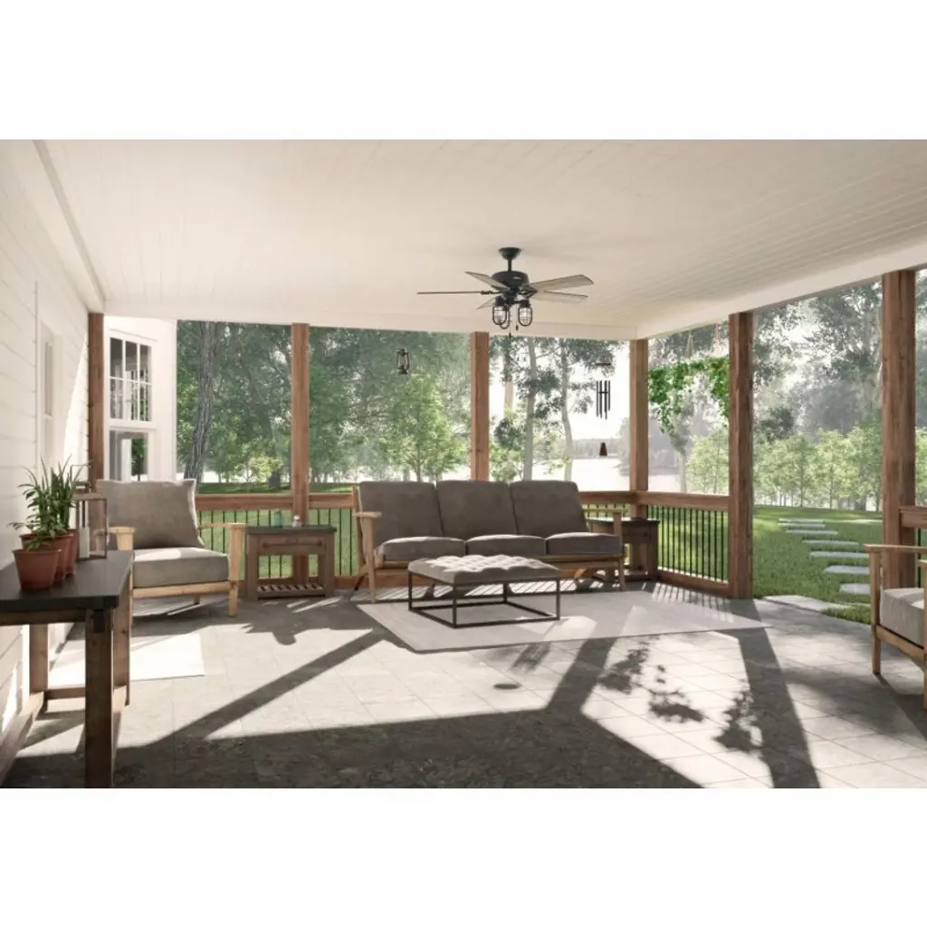 The Starklake ceiling fan dominates rustic indoor and outdoor spaces with its industrial farmhouse style. This five-bladed fan includes our 3-speed WhisperWind motor, energy-efficient Edison LED bulbs, and reversible fan blades. It is damp-rated to withstand outdoor elements while also creating the perfect look for your porch or patio. Shop the Starklake and make a statement in your farmhouse space.