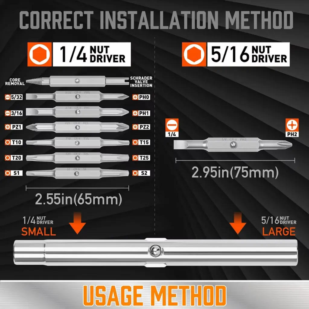 Discover this all - in - one multi - bit screwdriver set! With 18 different bits, it has everything you need. The industrial - strength heat - treated bits include Phillips, Pozidriv, Torx, Square, Slotted, Nut Driver and more. The ergonomic handle with anti - skid grip reduces hand fatigue, making it easy to use for extended periods. The drill bits can be stored in the handle, so you can carry it around without worry of losing bits. You can quickly switch between bits, which is very convenient for home repairs, car maintenance, or outdoor work. Whether you're a professional or just an amateur, this set is a must - have. It also makes an excellent holiday gift for your loved ones, bringing practicality and convenience to their lives.