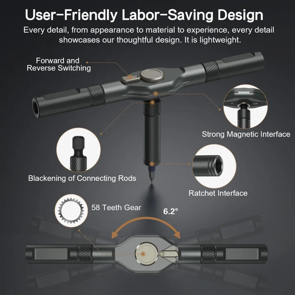 Discover this 42 - in - 1 magnetic screwdriver set, a must - have for home and professional repairs. The handle, made of hot - forged aluminum alloy, is detachable and adjustable, offering flexibility in different situations. With a 6.2 - degree ratchet and 58 - tooth mechanism, it saves 80% effort and has a 50N.m torque, making screw - tightening a breeze. The set includes 40 S2 magnetic chromium - molybdenum alloy steel bits in various types and lengths. The magnetic handle and slot, along with color - coded bit rings, ensure easy use and organization. It's perfect for a wide range of repairs, from home appliances to automotive maintenance. Packed in a compact case, it also makes an ideal gift for DIY lovers and professionals, adding convenience to your repair tasks.