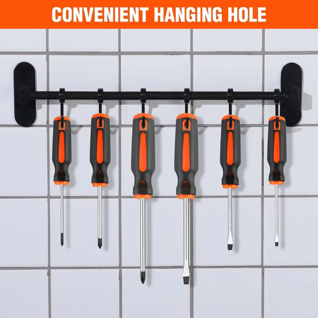 Discover a high - quality 6 - piece magnetic screwdriver set that revolutionizes your repair and assembly tasks. This set comes with 3 slotted screwdrivers (1/8"*3", 3/16"*3", 1/4"*4") and 3 phillips screwdrivers (PH0*3", PH1*3", PH2*4"), making it incredibly versatile. The screwdrivers feature strong magnetic tips that securely hold screws, and their blackening treatment resists rust. Made from heat - treated CR - V steel with a polished anti - rust surface, it's both durable and eco - friendly. The ergonomic design offers enhanced grip and comfortable handling, reducing fatigue during long - term use. Whether you're assembling furniture, repairing electronics, or working on DIY projects, this set is a must - have. It's also a perfect gift for men and DIY enthusiasts on special occasions, bringing convenience and efficiency to your life.