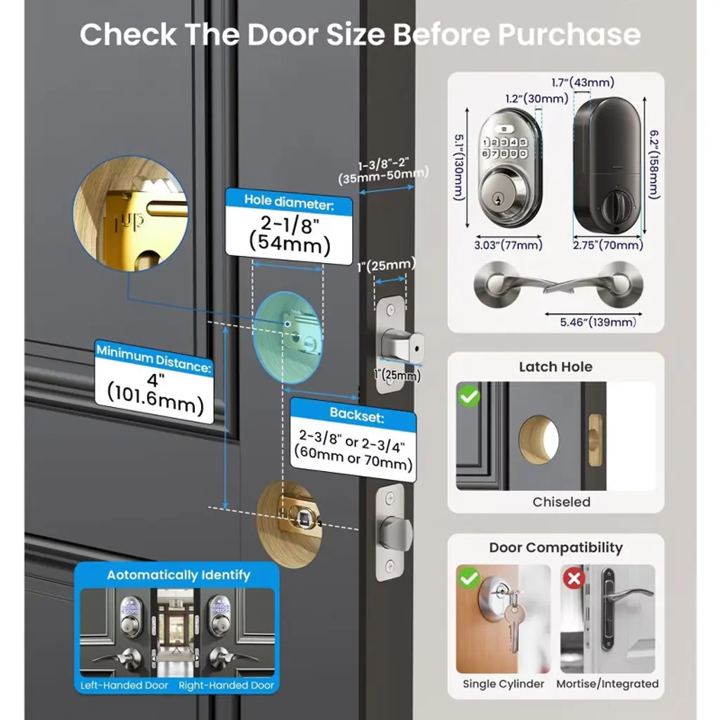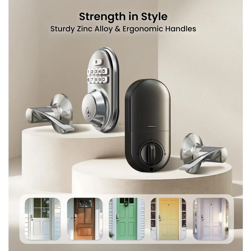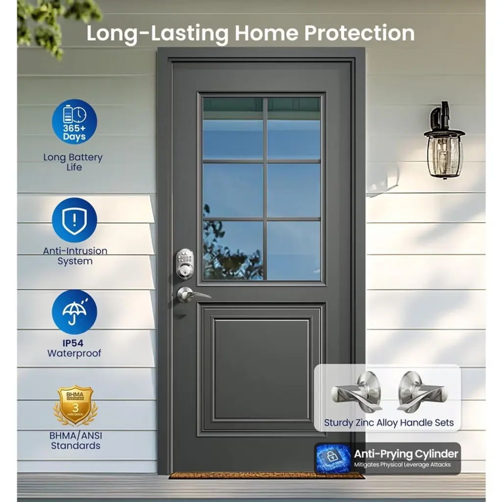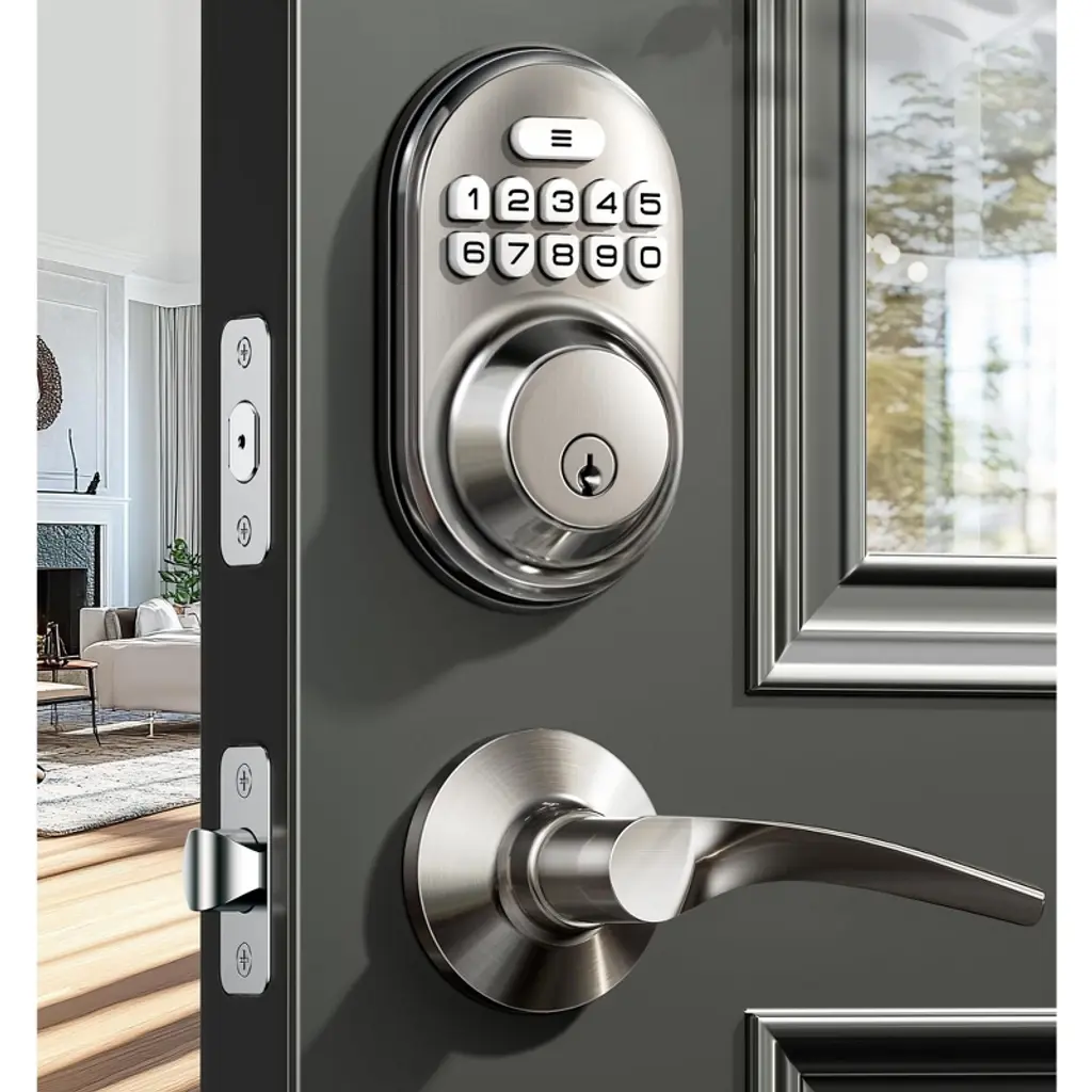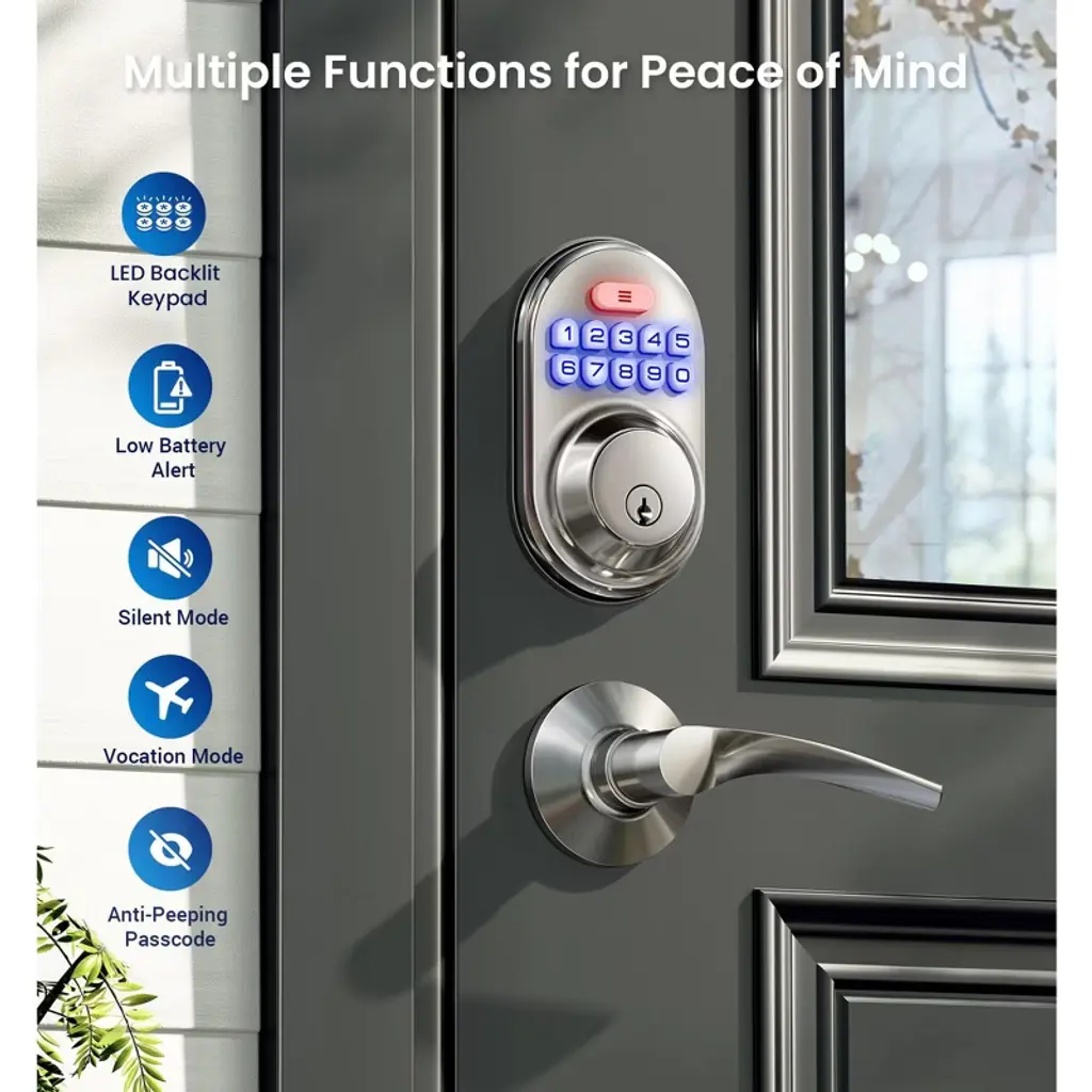 Itopfox Keyless Entry Door Lock With 2 Lever Handles - Electronic Keypad Deadbolt, Auto Lock, Backlit & Easy Install Design, Front Door Handle Set