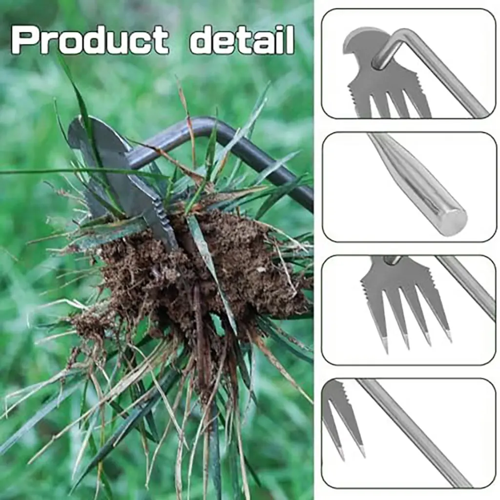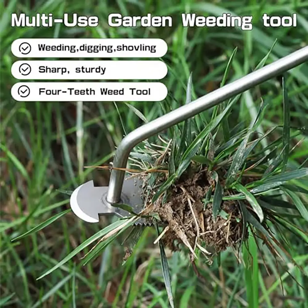 Itopfox Stainless Steel Manual Weeding Tool, 4-tooth Garden Weed Puller For Plants, Yards, Farms, Easily Remove Dandelions, Burdock & Invasive Weeds
