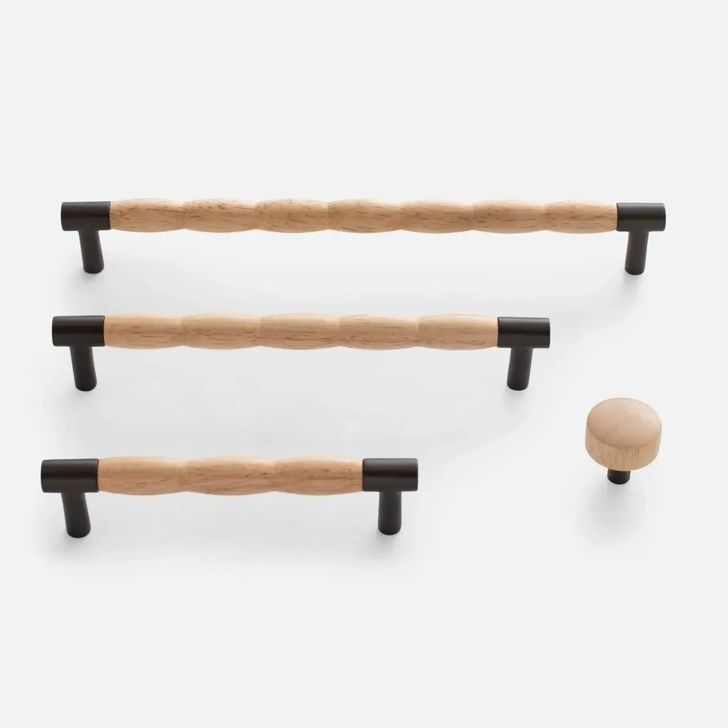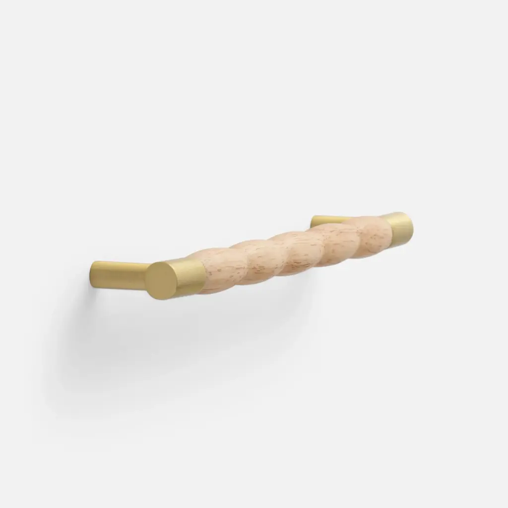 If the James Pull looks familiar to you, you’re onto something. The design is inspired by traditionally hand-carved wood balusters on staircases. Natural white oak and metal come together to bring both warmth and sophistication to your kitchen or bath.