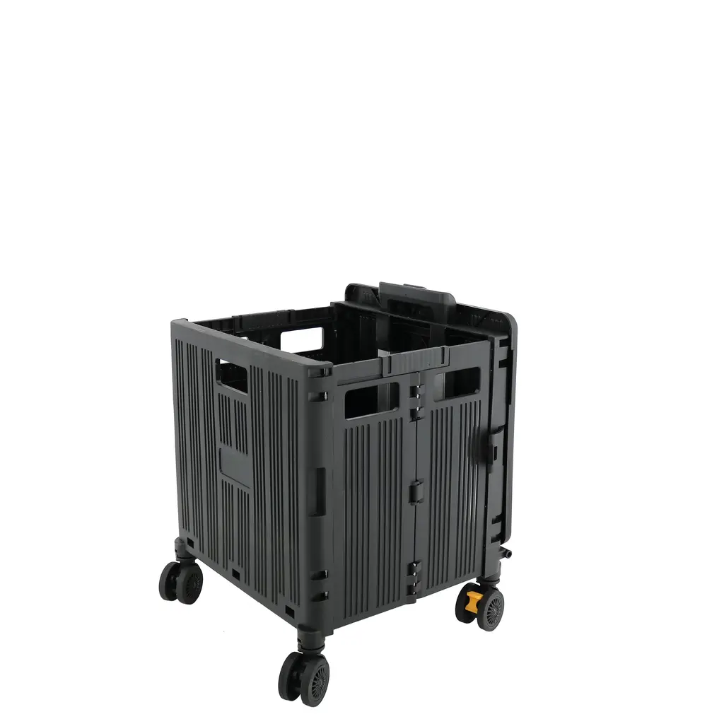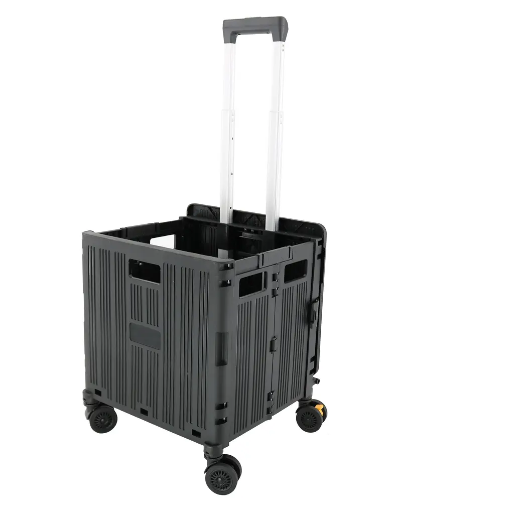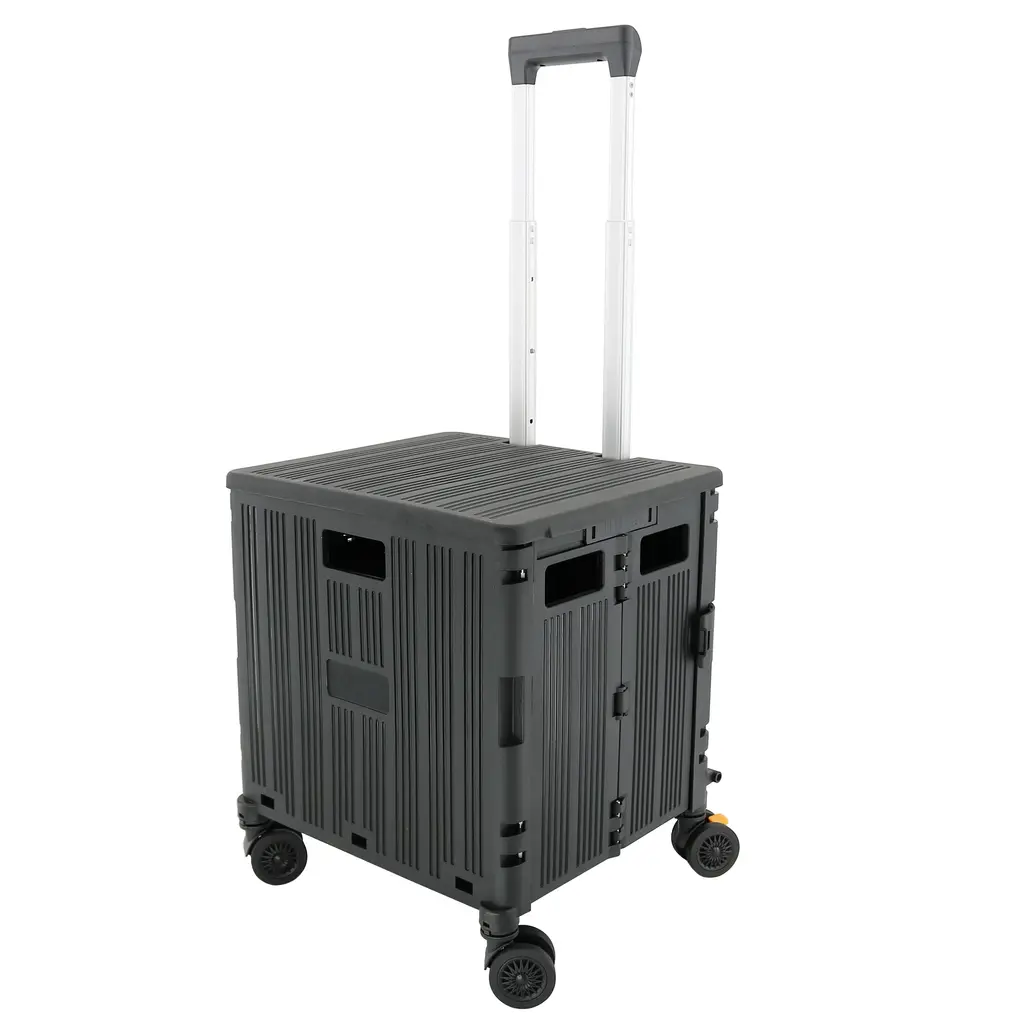 Jiallo Foldable Utility Crate With 360° Spinner Wheels & Telescopic Handle (Black Color) - 15.75x13.77 - Black - 15.75x13.77