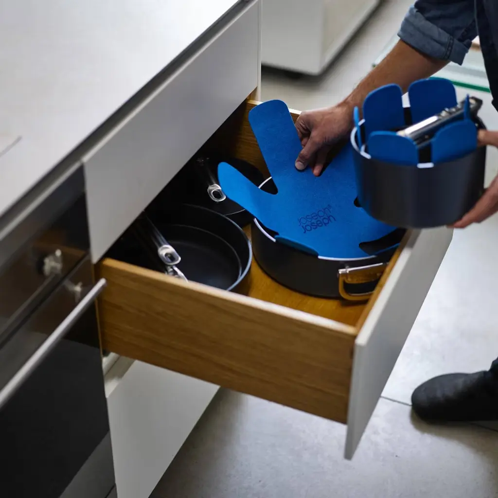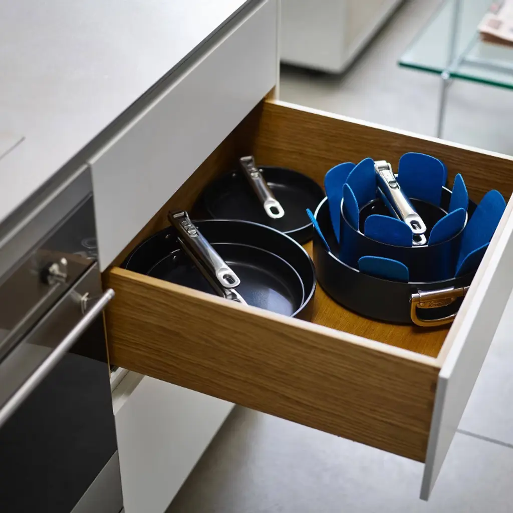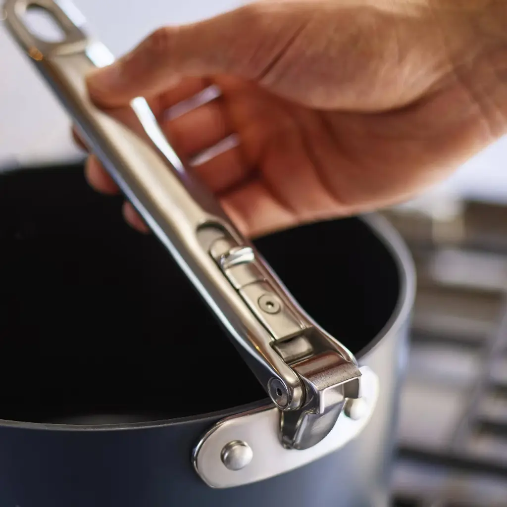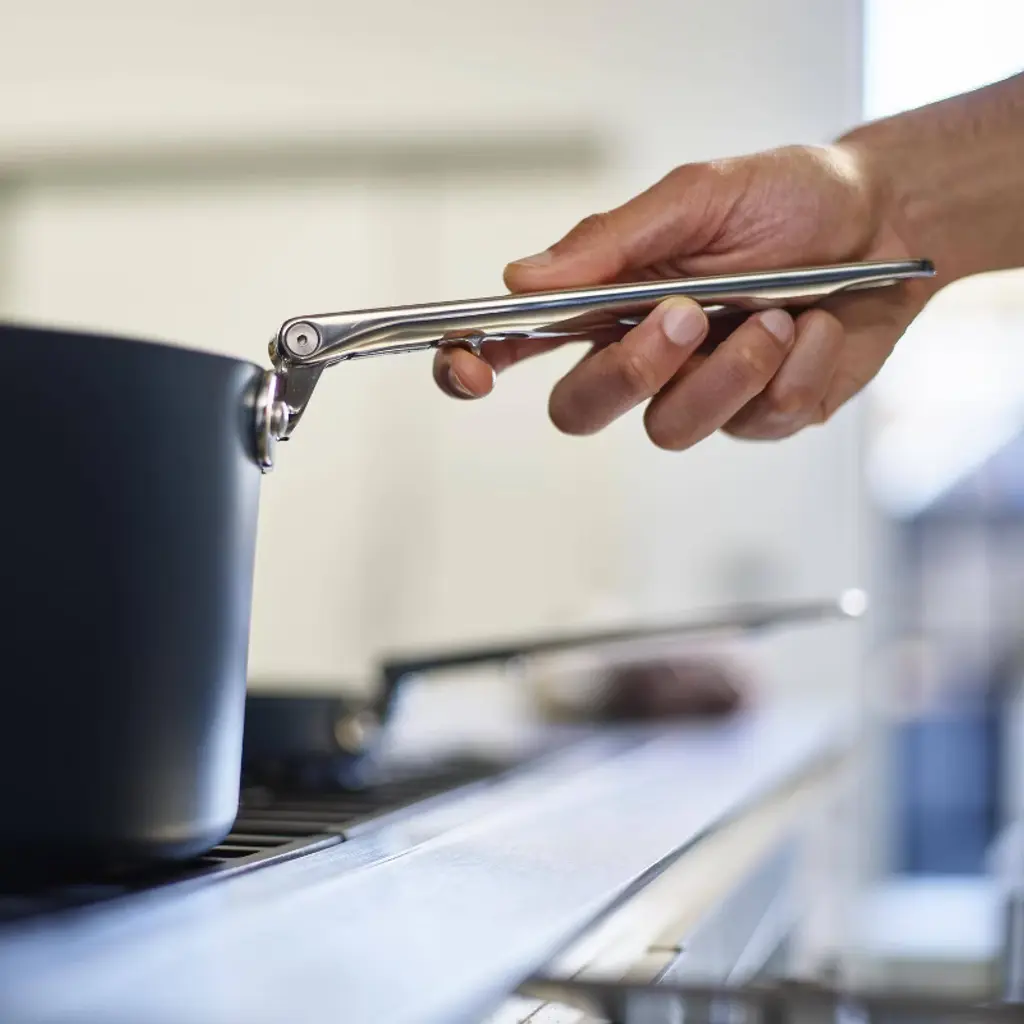 Goodbye clutter, hello Space! The non-stick saucepans in this 3-piece cookware set nest neatly together and feature clever, folding stainless- steel handles that save up to 50% more space than standard pans when stored. Engineered to last, the handles feature our patented and fail- safe SwingLock™ Mechanism that locks the handles securely into position during use and optimises space when folded. When it comes to cooking performance there's no compromise either. Professional quality, heavy- gauge aluminium bodies ensure even heat distibution that eliminates hot spots and are built to last. The high performance, ceramic non-stick coating is super durable, easy to clean and allows you to achieve exceptional cooking results. It's healthier to cook with too as it's free from PTFE, PFAS, PFOA, Lead and Cadmium, which means you can prepare all your favourite recipes with confidence. Each pan comes with a tempered glass lid that also has a folding handle, a smart pan-lid stand and a pair of felt pan-protectors, making compact storage even easier. Suitable for all stove, including induction, these pans are part of the Space cookware range - created for cooks, made for storage.