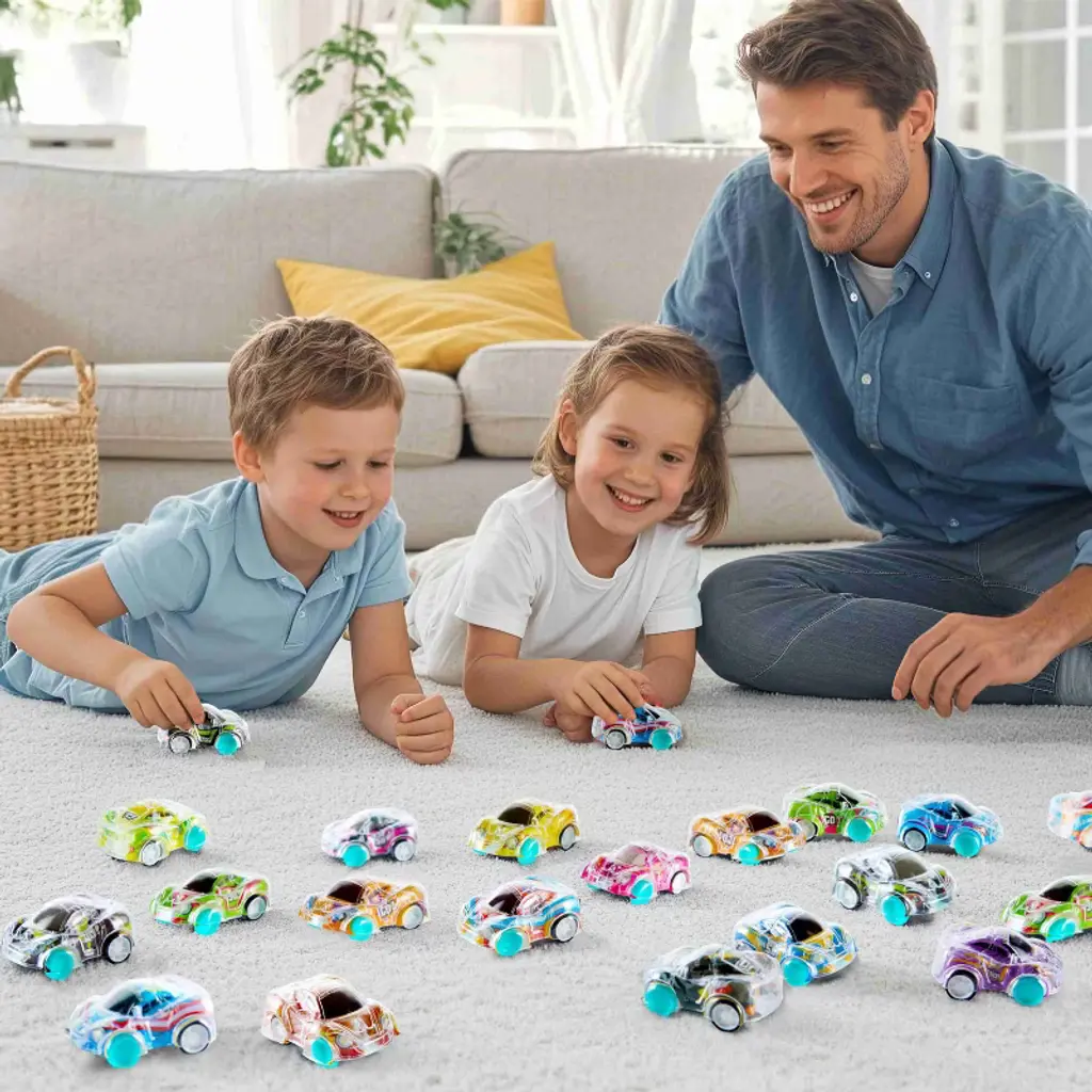 50 Cars in One Big Pack This set includes 50 pull-back cars—enough for every child at the party! Perfect for birthday favors, classroom treasure boxes, carnival prizes, piñata stuffers, and goodie bags. Child-Safe Design All cars are made from non-toxic materials that meet toy safety standards. With smooth edges and an ideal size, they provide worry-free fun for boys and girls ages 8 and up. Built to Last Constructed from high-quality ABS plastic, each car is highly durable. Kids can enjoy hours of active play without cracks or breaks. Easy to Use & Portable Featuring a smooth pull-back mechanism, these cars are fast and fun. Each measures approximately 2 inches—easy for small hands to hold and perfect for on-the-go play, travel, or airplane adventures. Encourages Social Play Ideal for group activities, team games, and mini races, these cars promote interaction, collaboration, and friendly competition in classrooms, parties, and other group settings. Develops Key Skills With various colors and styles, these cars help strengthen hand-eye coordination, sensory-motor skills, spatial awareness, and fine motor skills through imaginative play and racing.