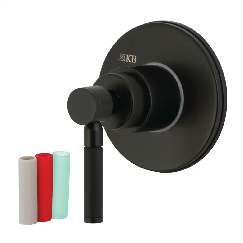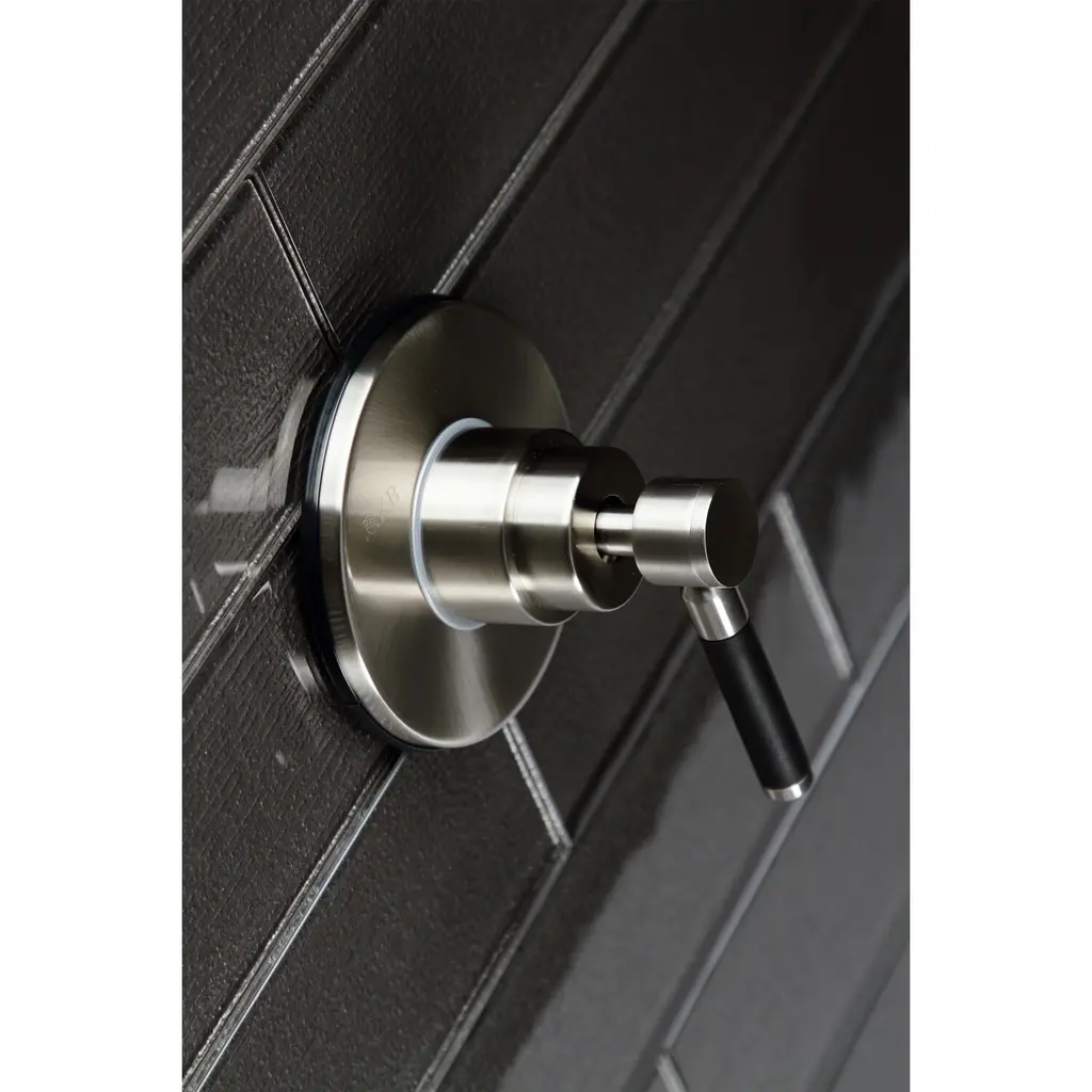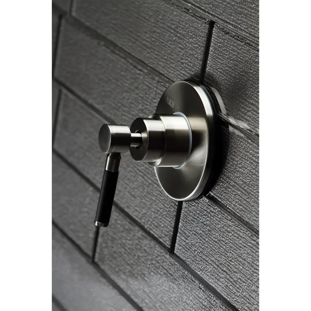 This lever handle, diverter valve and face plate help direct water to divert into three different ways, usually for the shower head, hand shower or tub spout. Each component is crafted with solid brass for durable long-term use. The diverter valve features one inlet to three outlets, to move water to its desired destination. Easy to install, the diverter is usable with hot and cold water and complies with other modern designs.Features1 inlet 3 outlets for added versatilityIn-wall installation1/2-14 NPT female inlet connection4-5/16" faceplate diameterSingle lever handle meets ADA guidelinesCorrosion-resistant finishDesigned for long-lasting durability