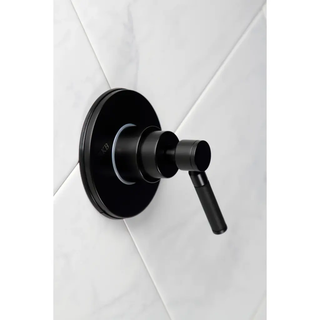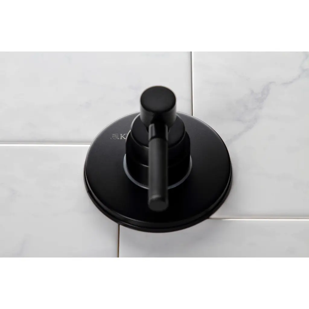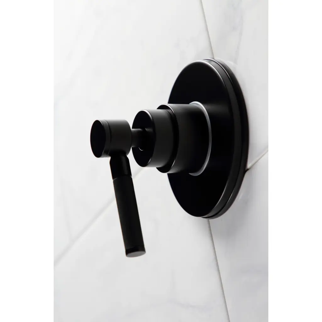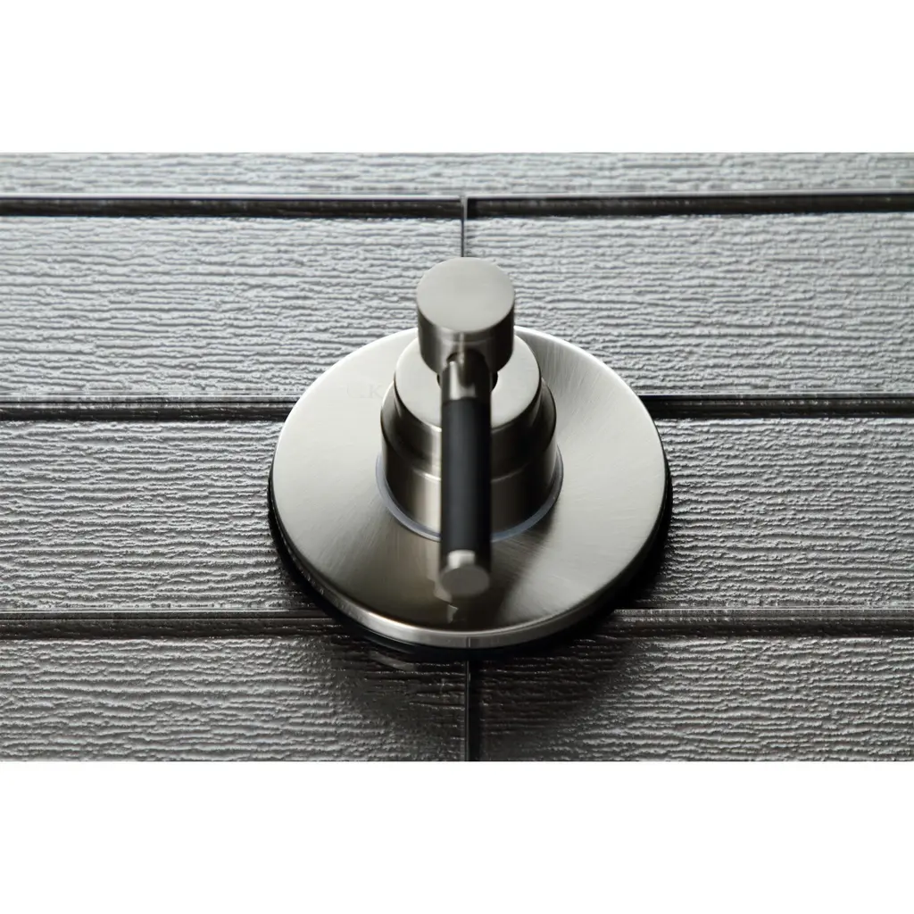 This lever handle, diverter valve and face plate help direct water to divert into three different ways, usually for the shower head, hand shower or tub spout. Each component is crafted with solid brass for durable long-term use. The diverter valve features one inlet to three outlets, to move water to its desired destination. Easy to install, the diverter is usable with hot and cold water and complies with other modern designs.Features1 inlet 3 outlets for added versatilityIn-wall installation1/2-14 NPT female inlet connection4-5/16" faceplate diameterSingle lever handle meets ADA guidelinesCorrosion-resistant finishDesigned for long-lasting durability